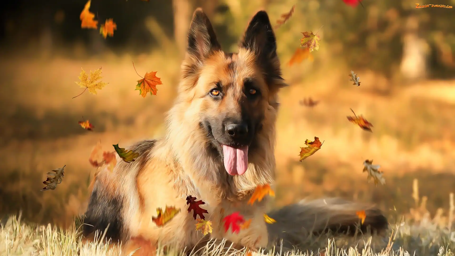 Zdjęcie: Pies, Liście, Owczarek niemiecki