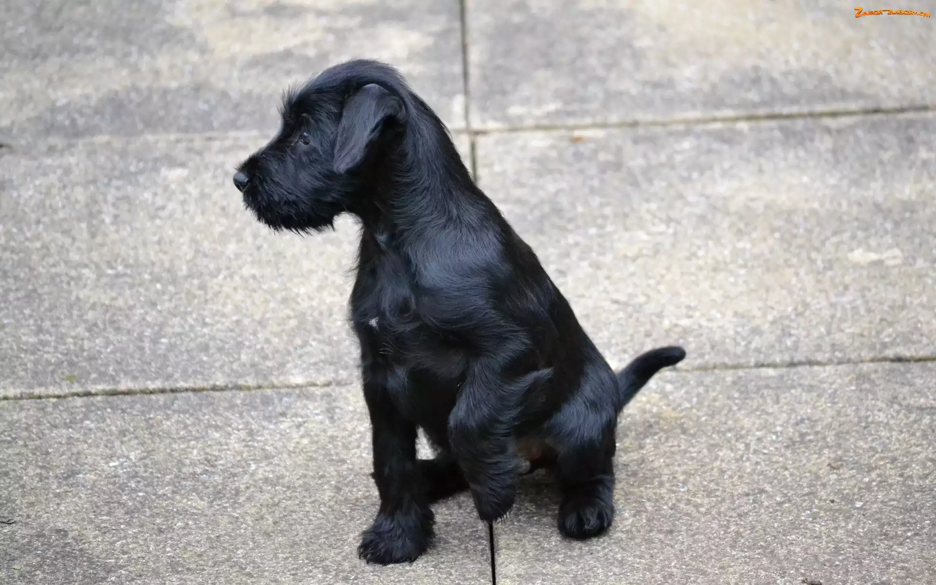 Łapa, Podniesiona, Młody, Pies, Czarny Czarny, Pies, Paprocie, Sznaucer olbrzym
