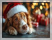 Zdjęcie: Mikołaja, Czapka, Prezenty, Pies, Springer spaniel walijski