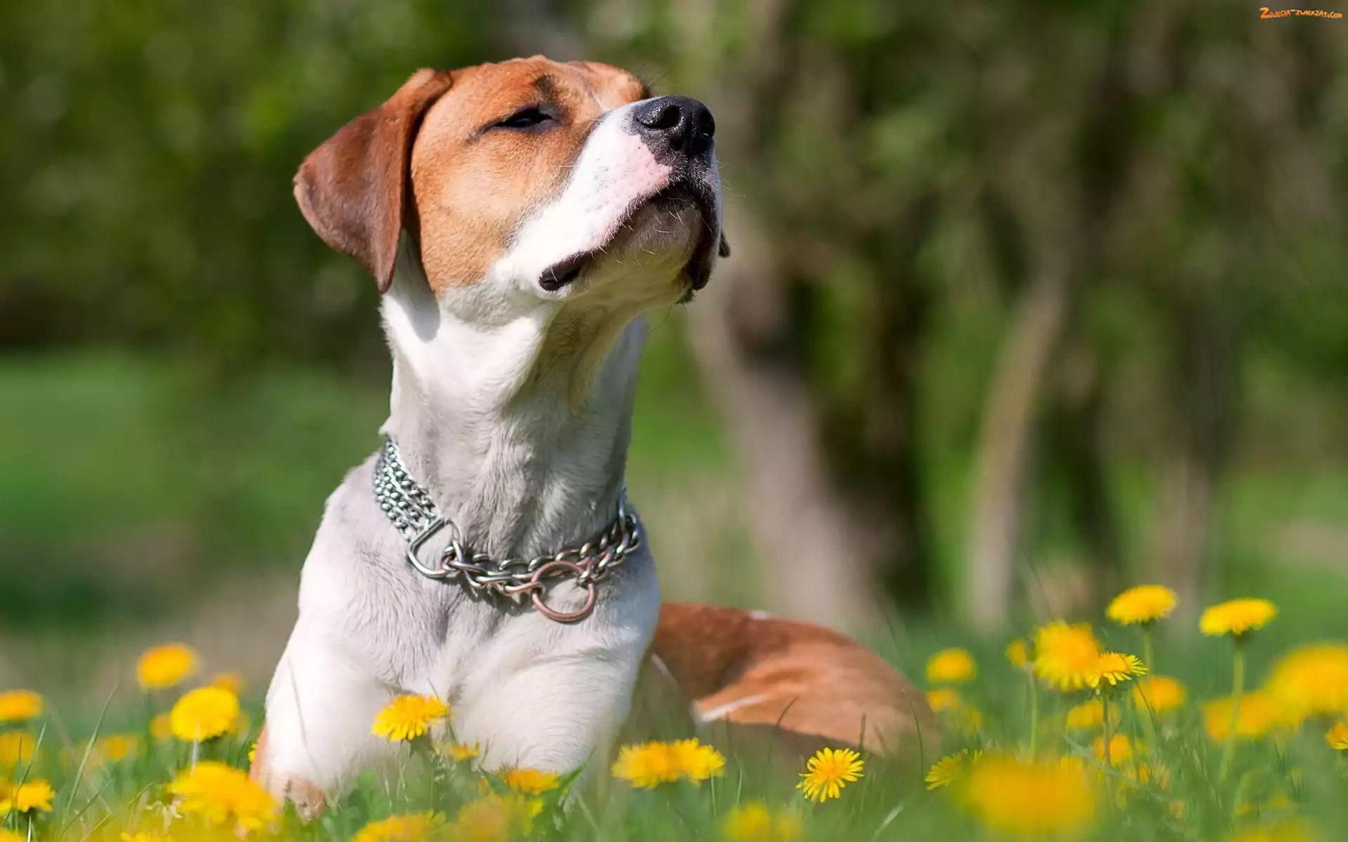 Zdjęcie: Pies, Biało, Mlecze, Żółte, Rudy, Łąka