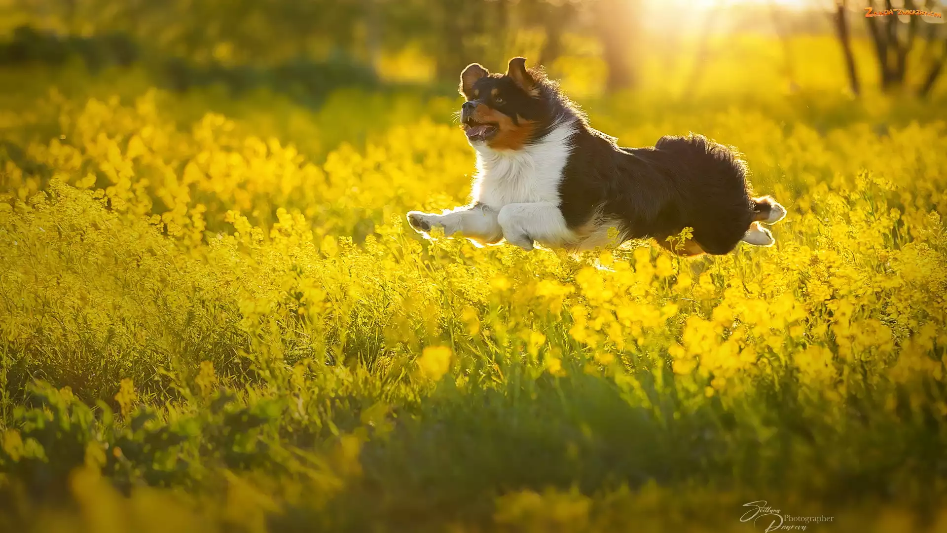 Zdjęcie: Pies, Kwiaty, Skaczący, Żółte