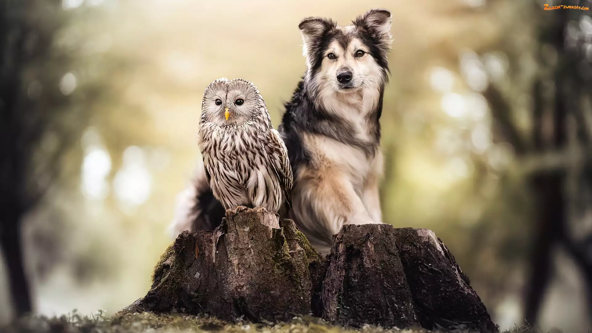 Zdjęcie: Sowa, Puszczyk, Pień, Pies