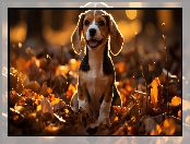 Zdjęcie: Grafika AI, Szczeniak, Pies, Beagle, Liście, Jesień
