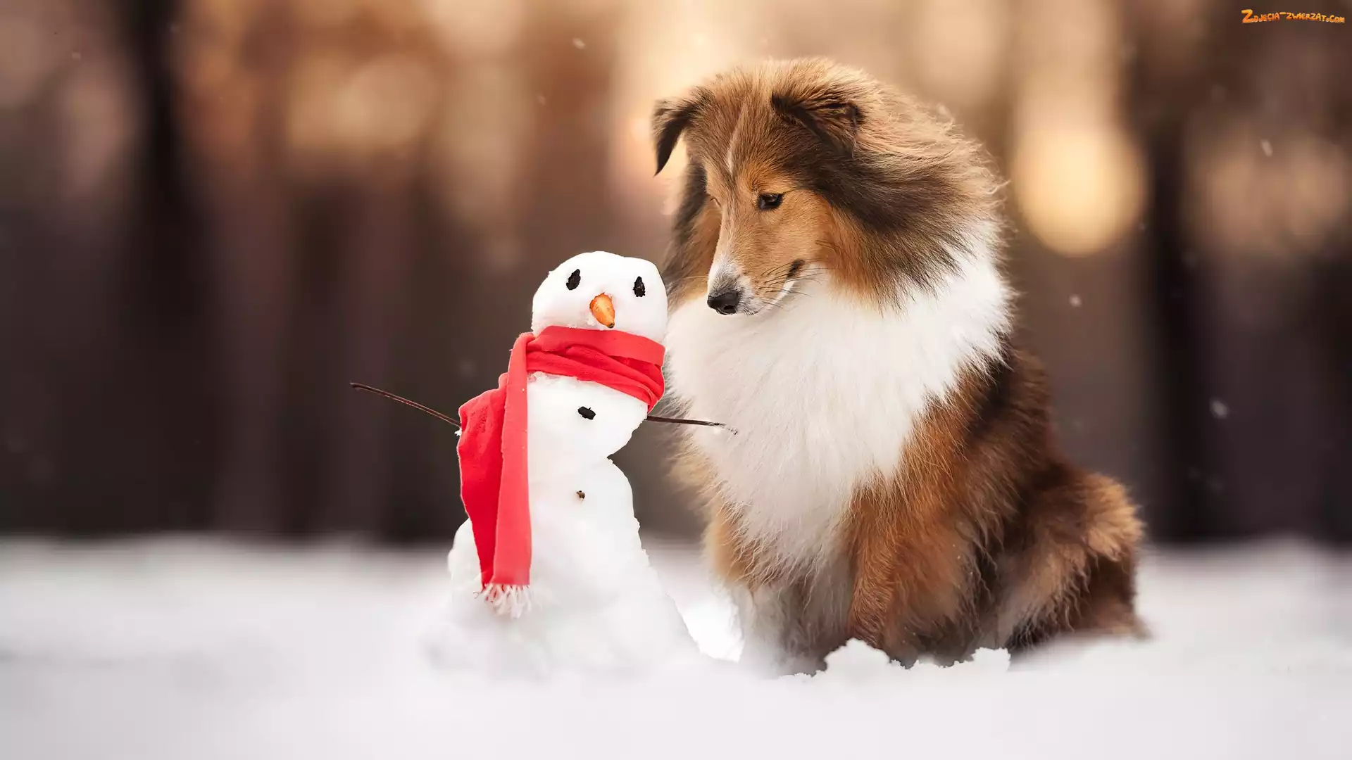 Śnieg, Zima, Bałwan, Pies, Owczarek szetlandzki