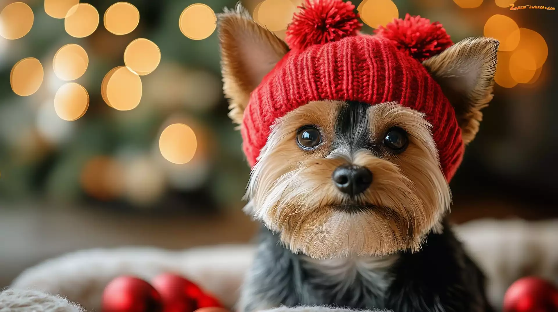 Zdjęcie: Czapka, Czerwona, AI, Pies, Yorkshire terrier