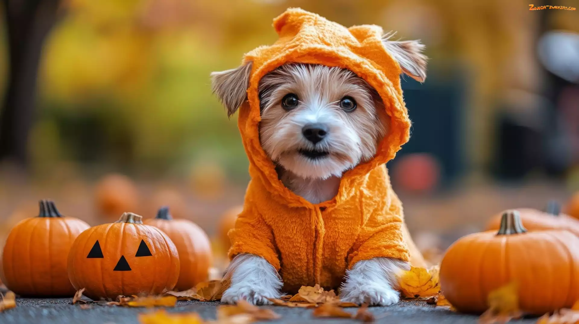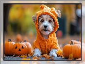 Zdjęcie: AI, Yorkshire terrier, Pies, Szczeniak, Ubranko, Dynie