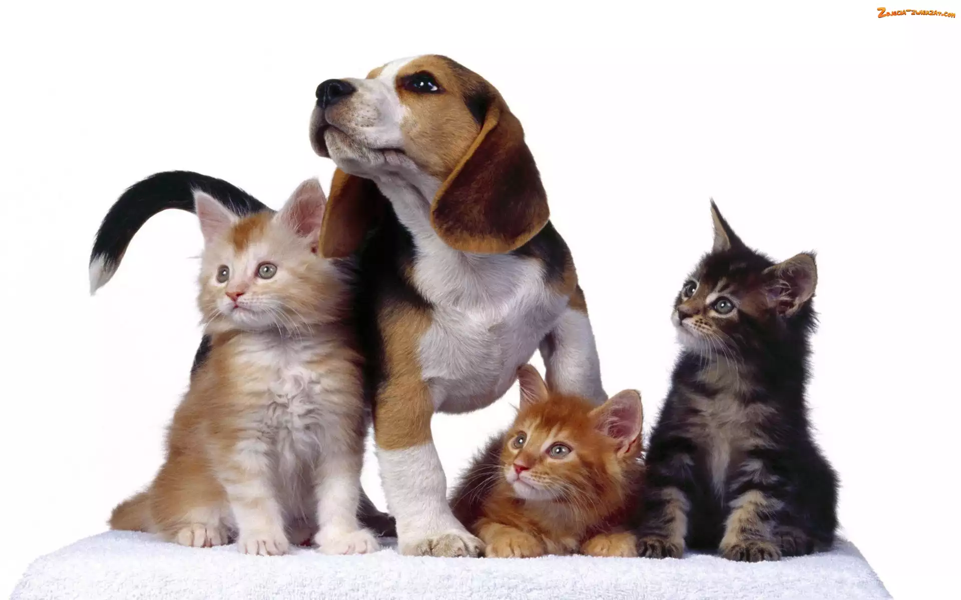 Zdjęcie: Pies, Koty, Zapatrzony, Trzy
