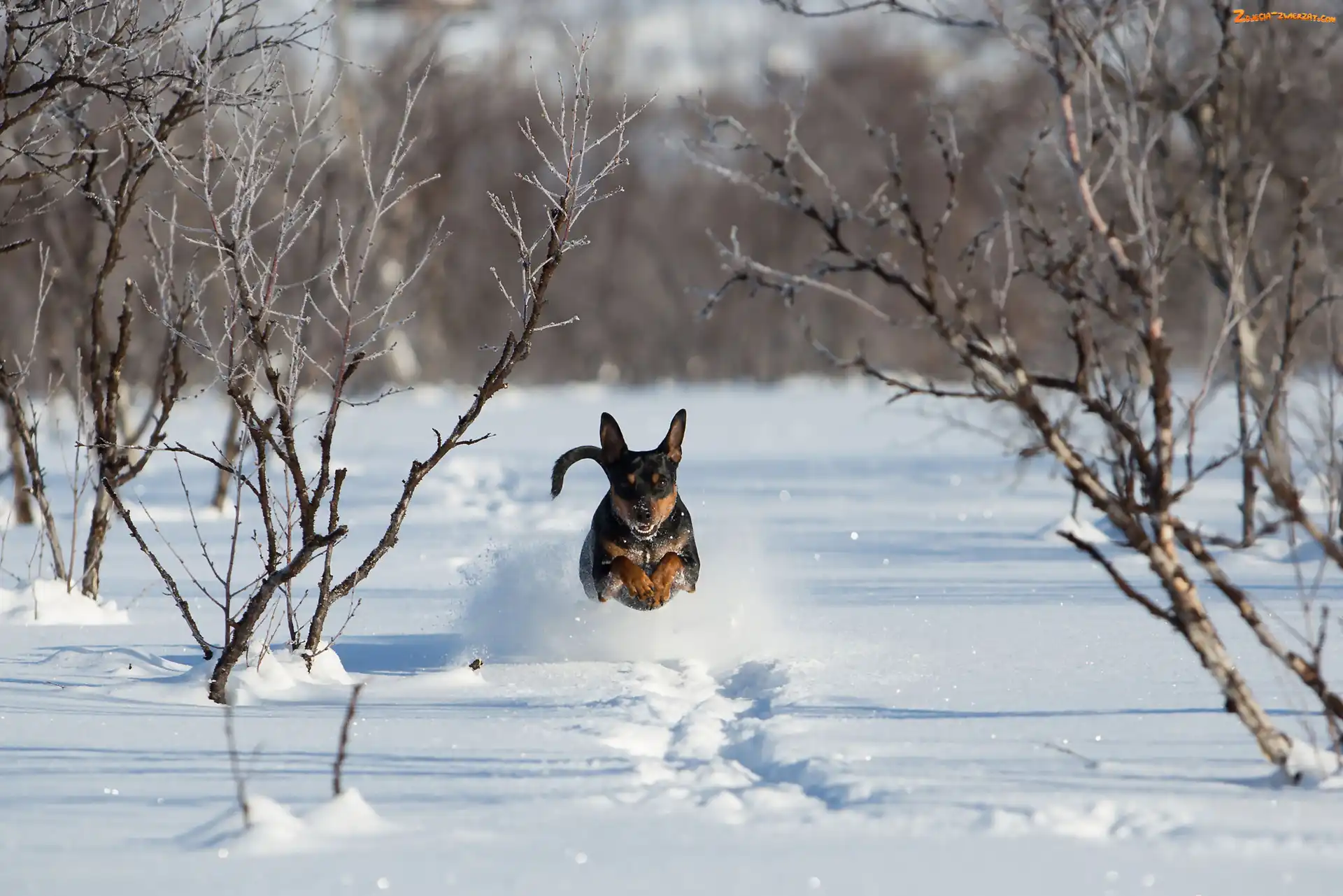 Zdjęcie: Pies, Krzewy, Zima, Śnieg