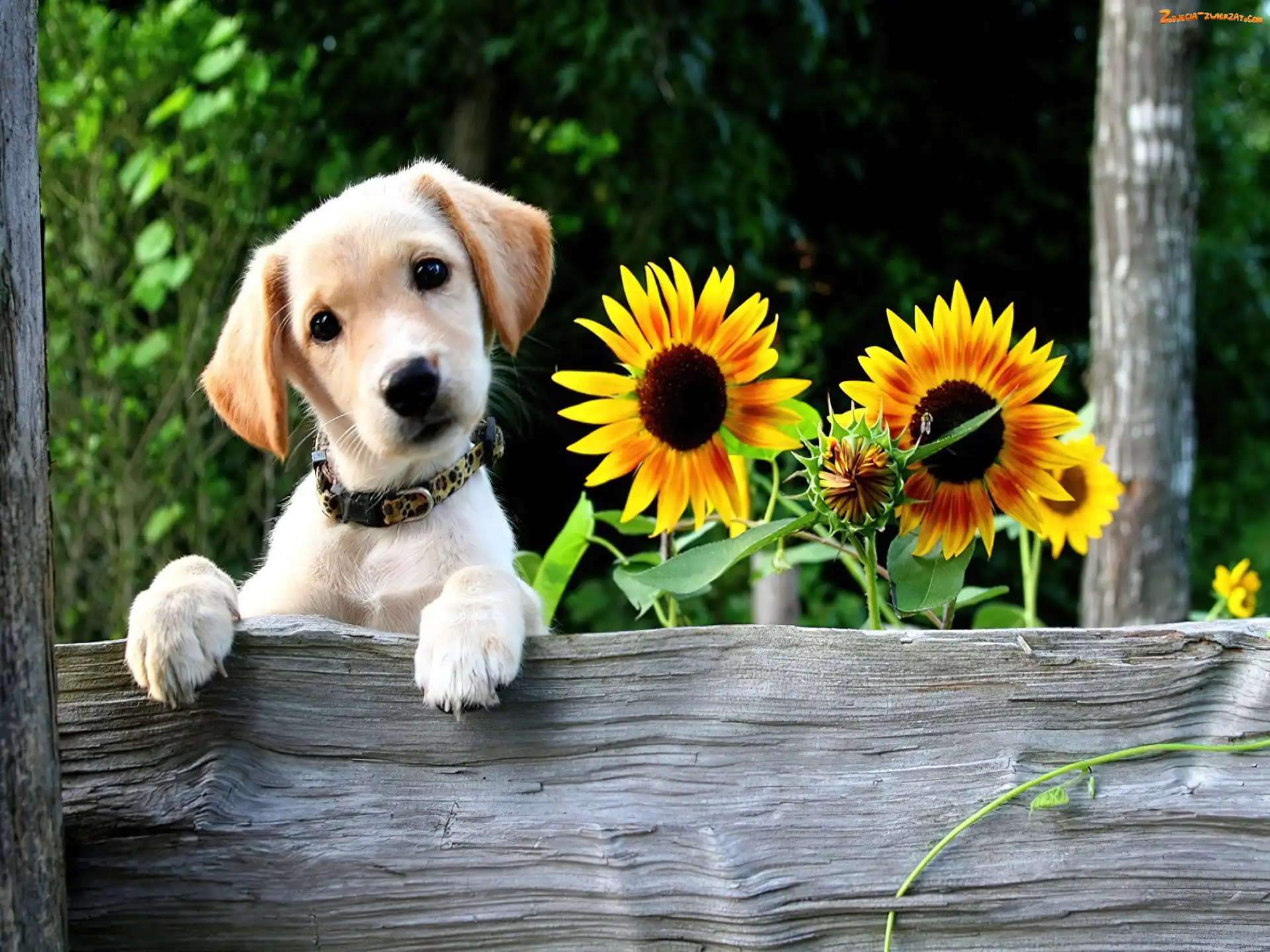 Zdjęcie: Labrador Retriever, Piesek, Słoneczniki