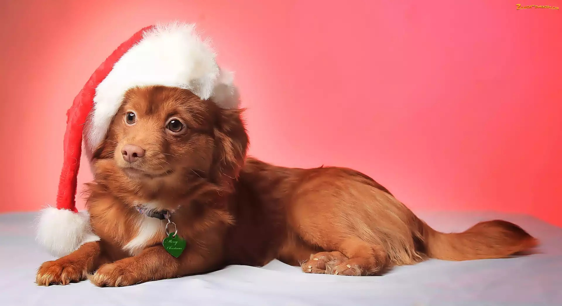 Piesek, Mikołaja, Uśmiechnięty, Czapka