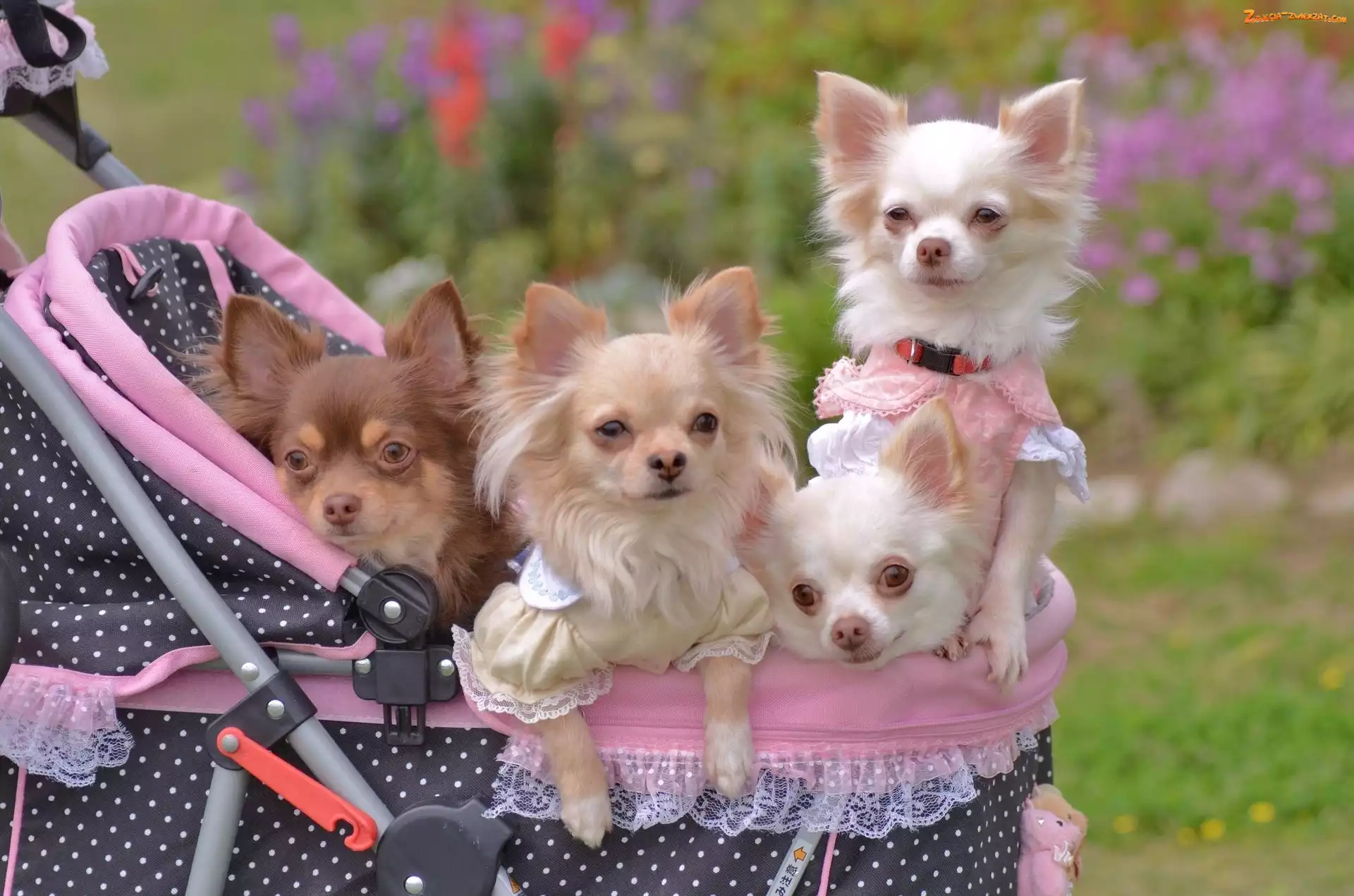 Pieski, Wózek, Cztery, Chihuahua