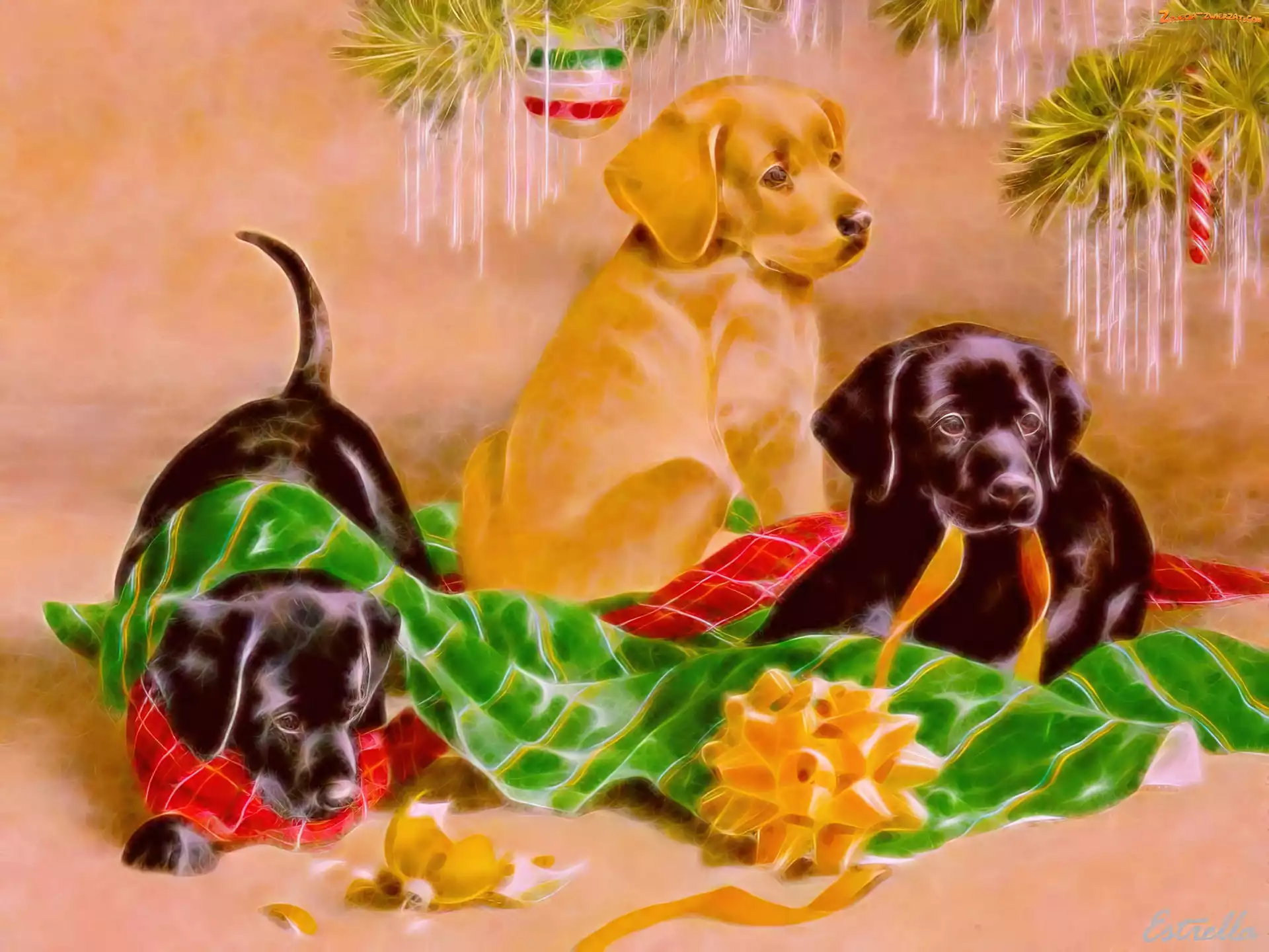 Zdjęcie: Pieski, Kokarda, Trzy, Kocyk