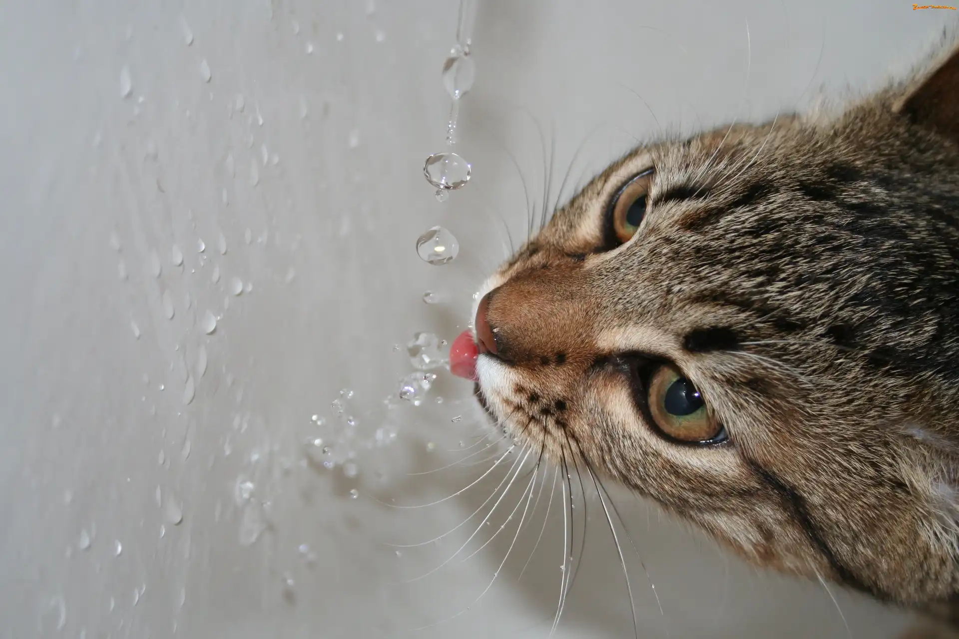 Zdjęcie: Pijący, Wody, Kot, Krople