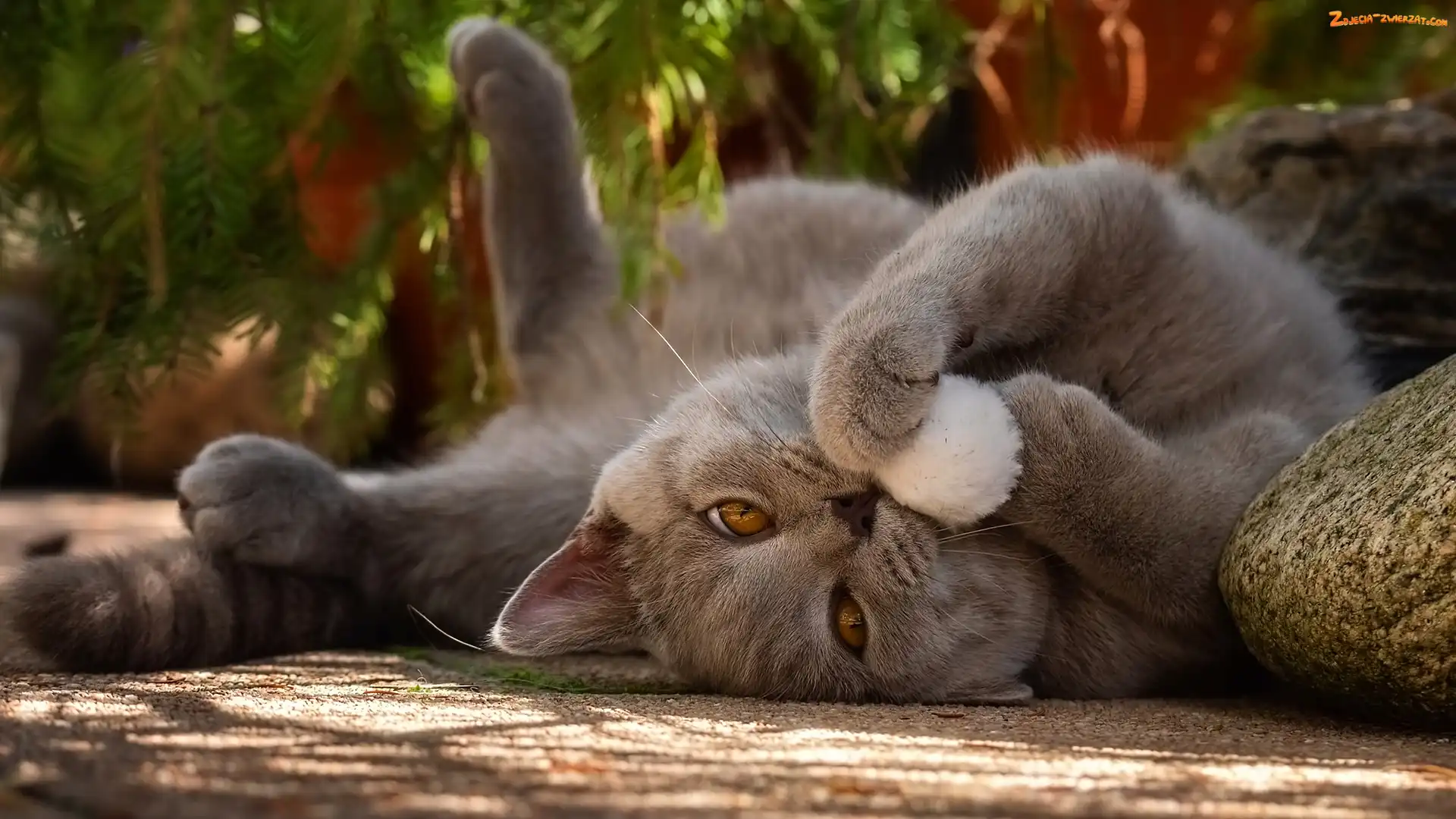 Zdjęcie: Kamień, Piłeczka, Miodowe, Kot brytyjski krótkowłosy, Oczy