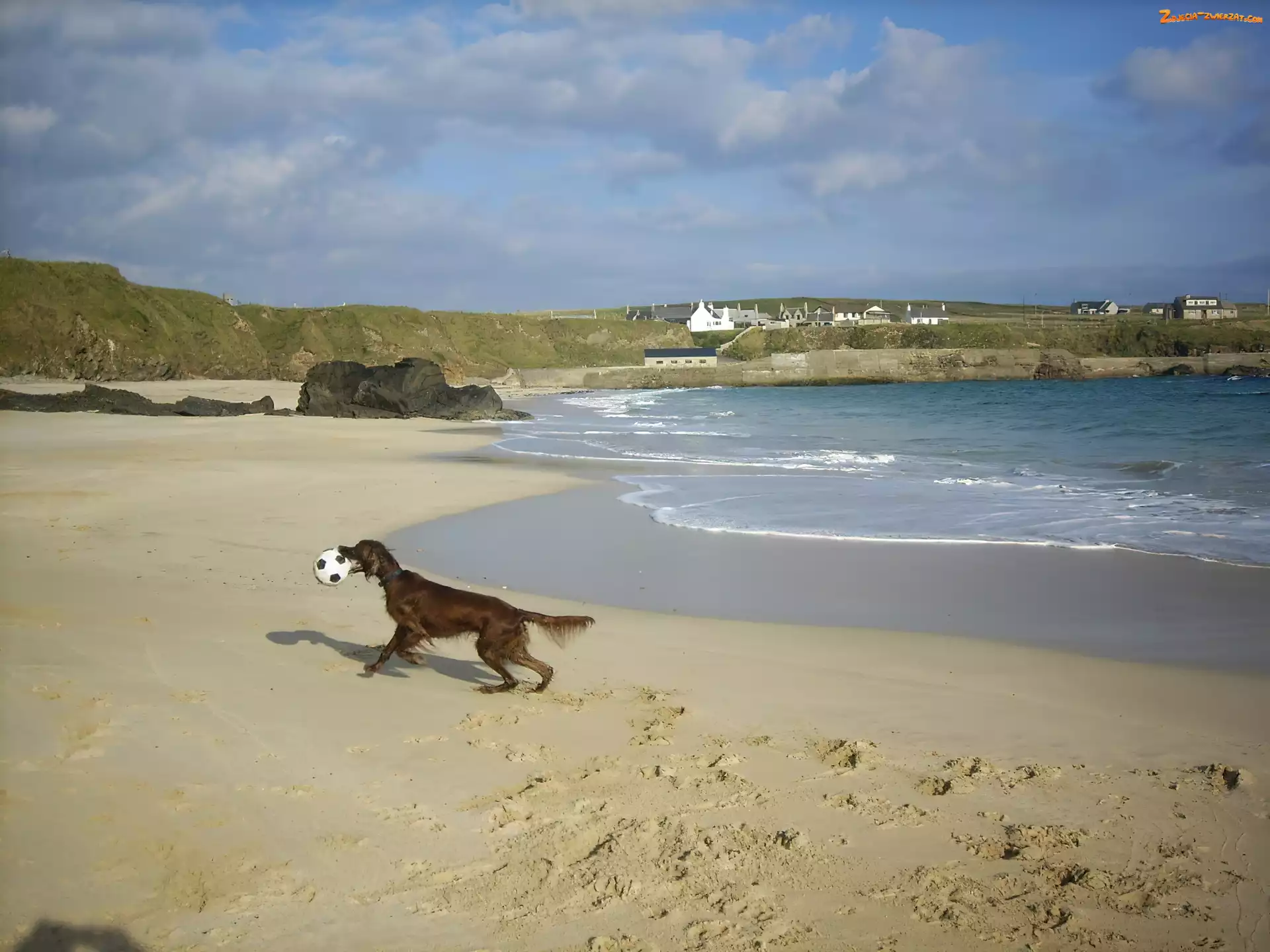 Zdjęcie: piłka, Seter irlandzki, plaża
