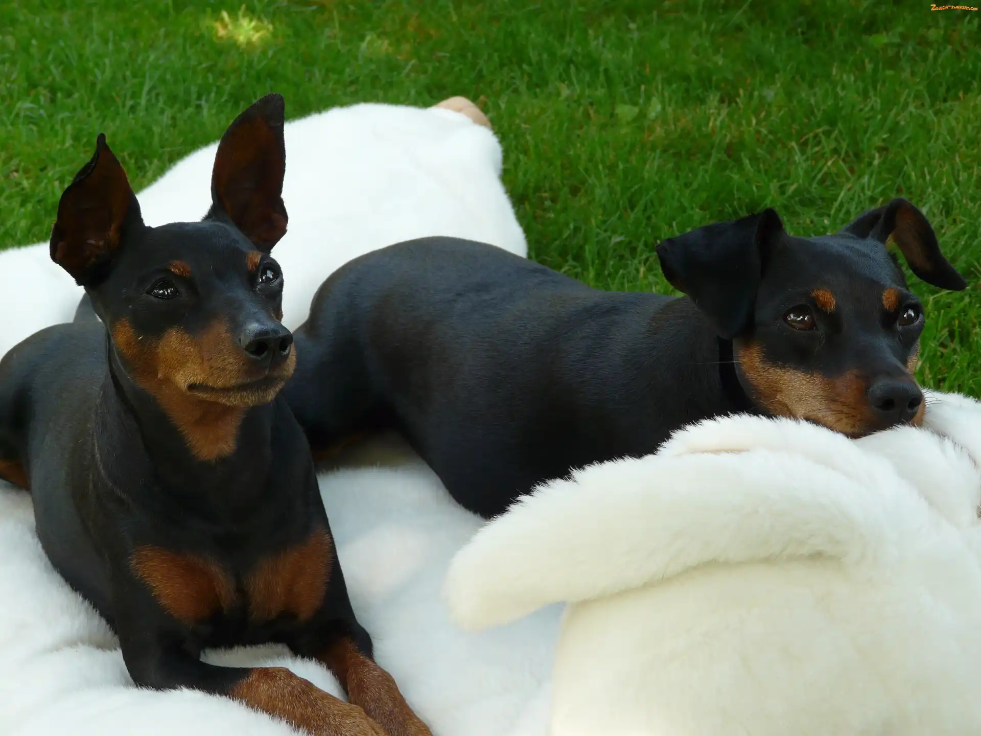 Zdjęcie: Pinczery miniaturowe, koc, dwa, biały