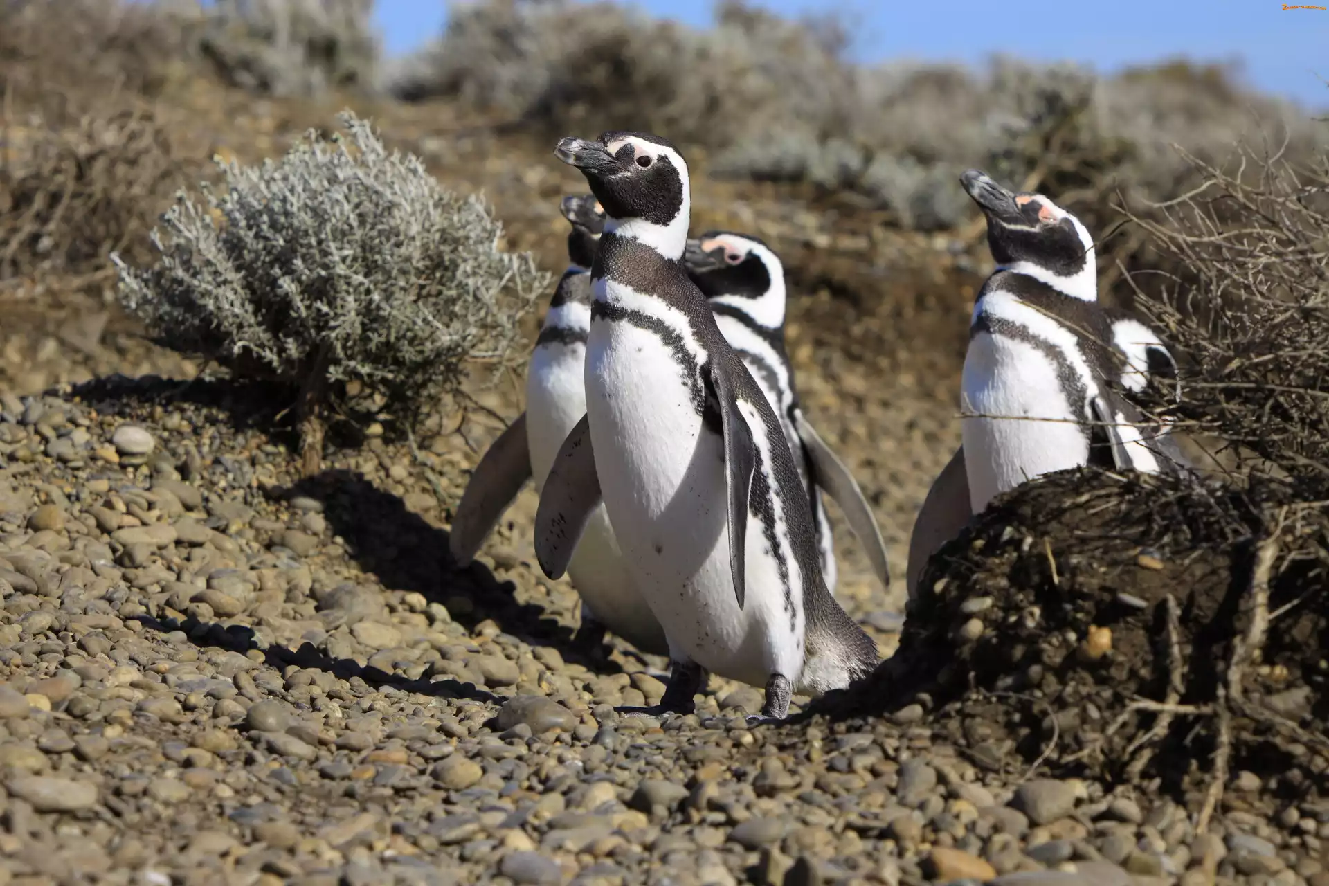 Zdjęcie: Kamienie, Pingwiny, Krzaki