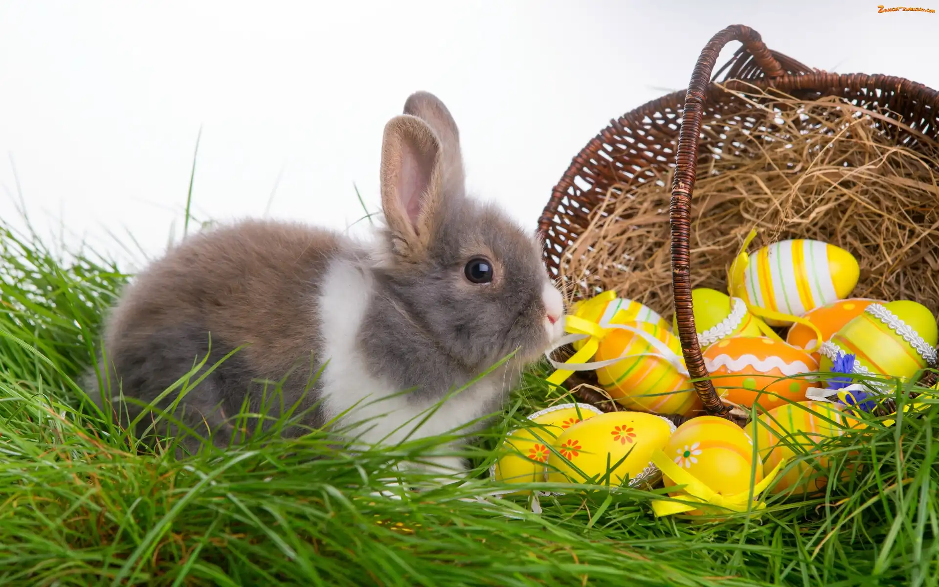 Zdjęcie: Pisanki, Królik, Wielkanoc, Trawa, Kosz, Siano