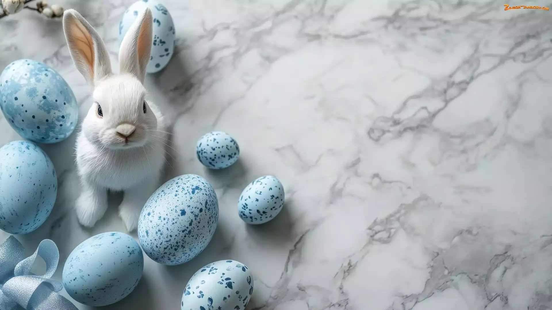 Zdjęcie: Biały, Pisanki, Królik, Wielkanoc, Niebieskie