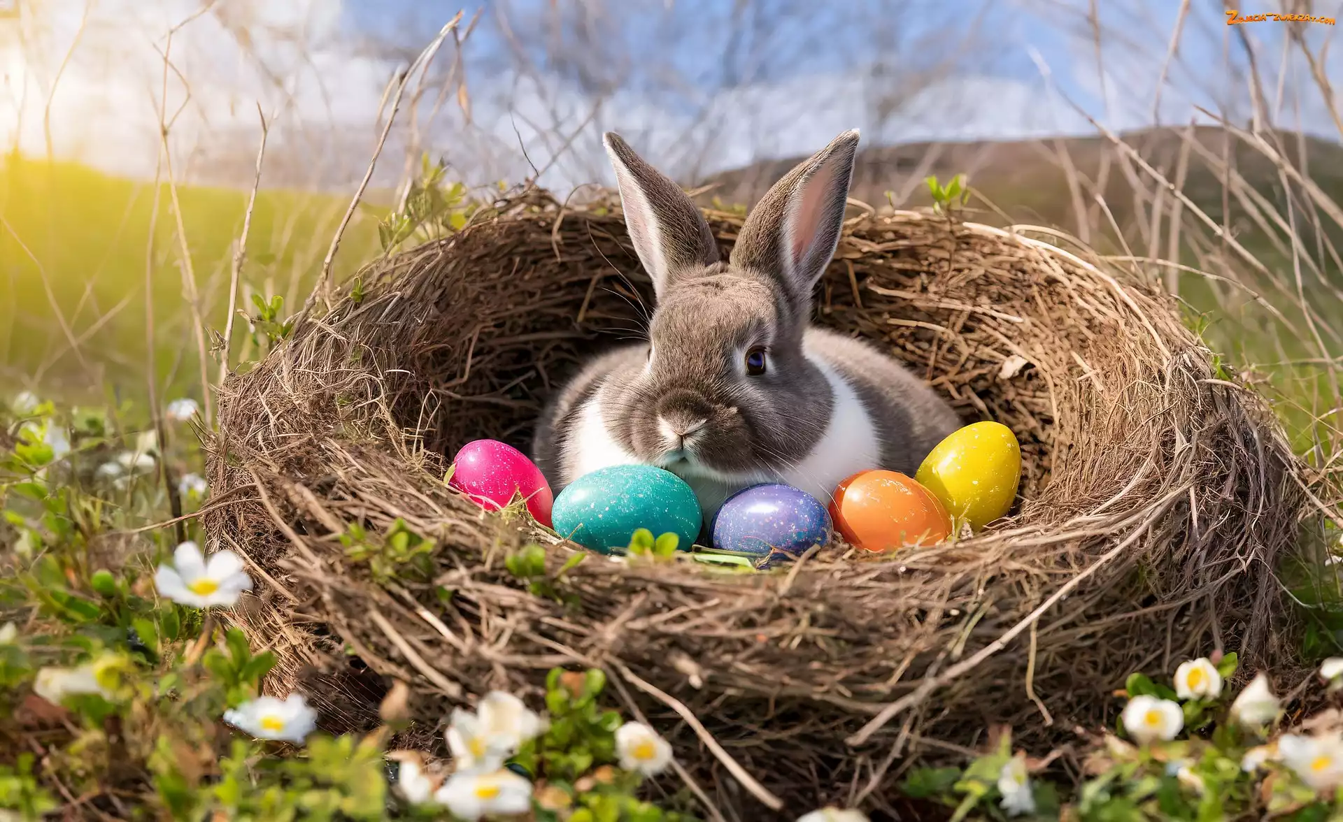 Gniazdko, Pisanki, Trawa, Wielkanoc, Królik