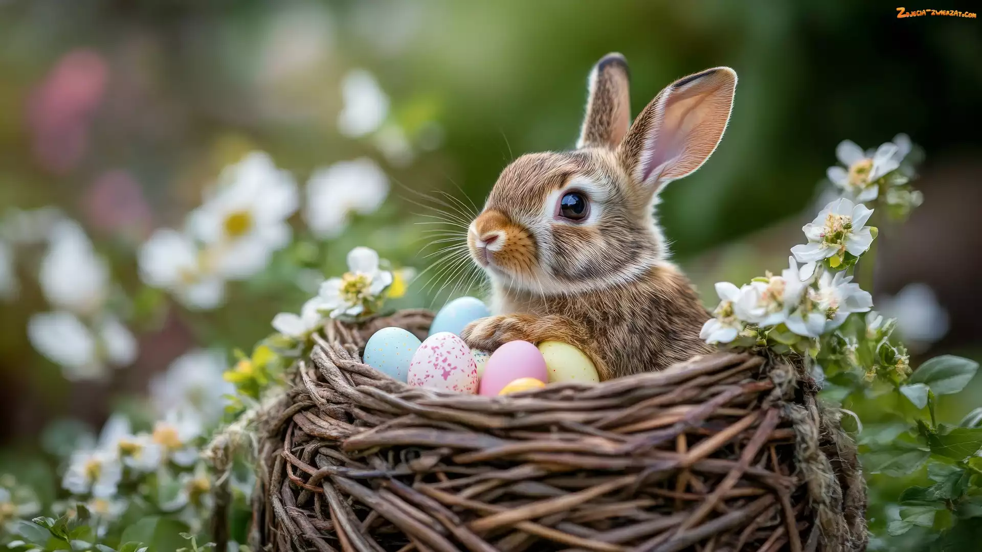 Zdjęcie: Kwiaty, Pisanki, Wielkanoc, Królik, Koszyk