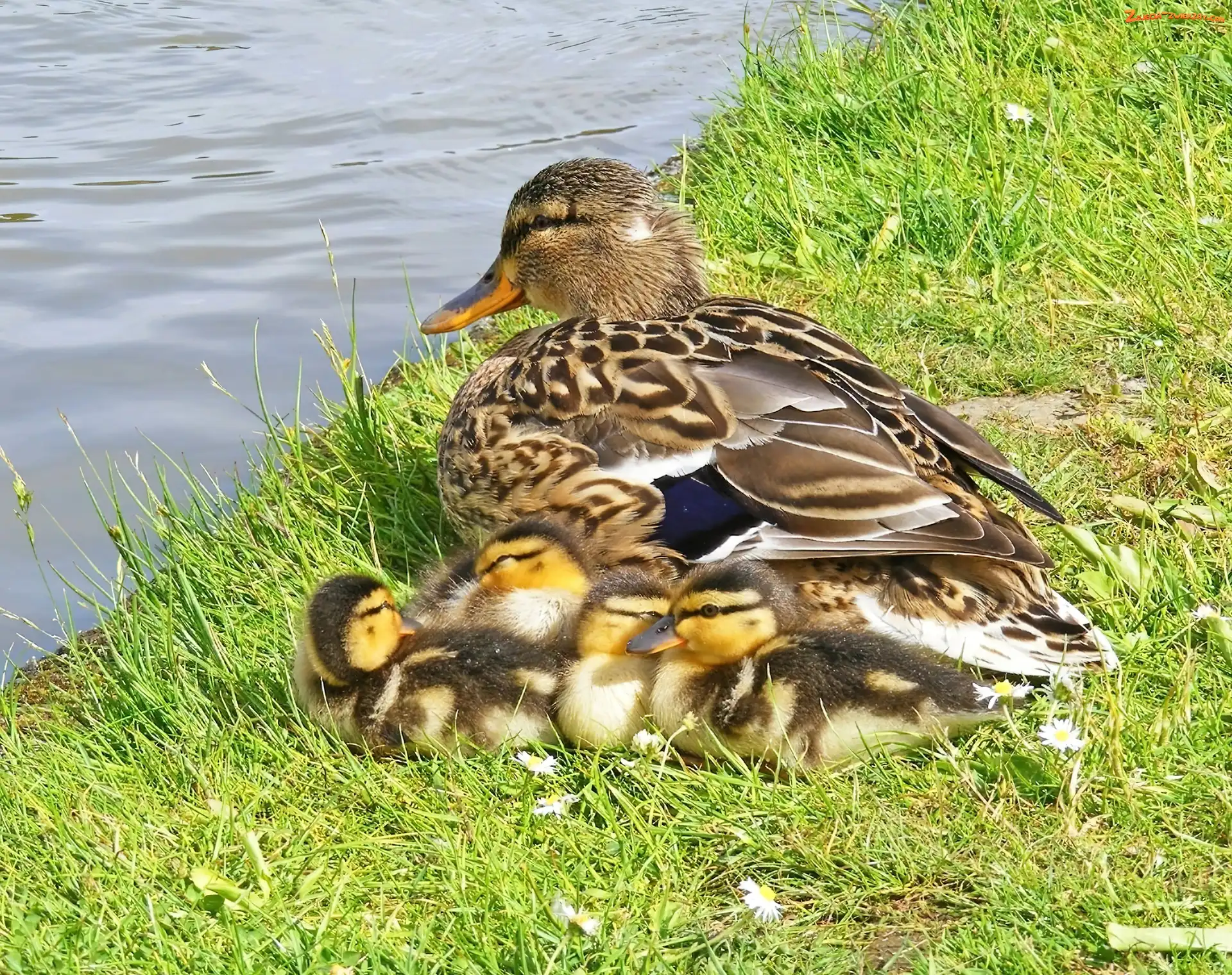 Zdjęcie: Pisklaki, Trawa, Kaczka, Staw