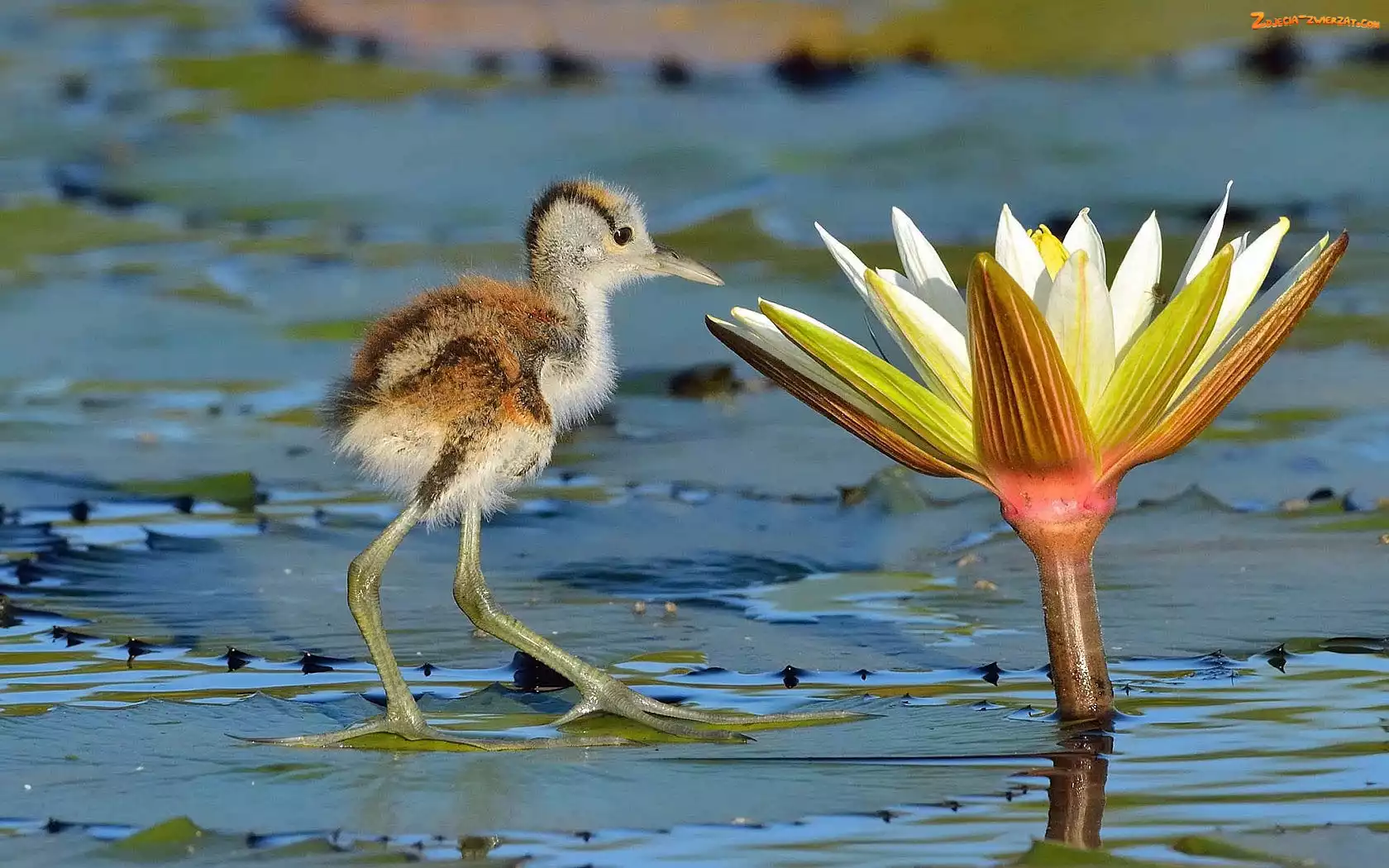 Zdjęcie: Pisklę, Ptak, Lilia, Staw, Wodna
