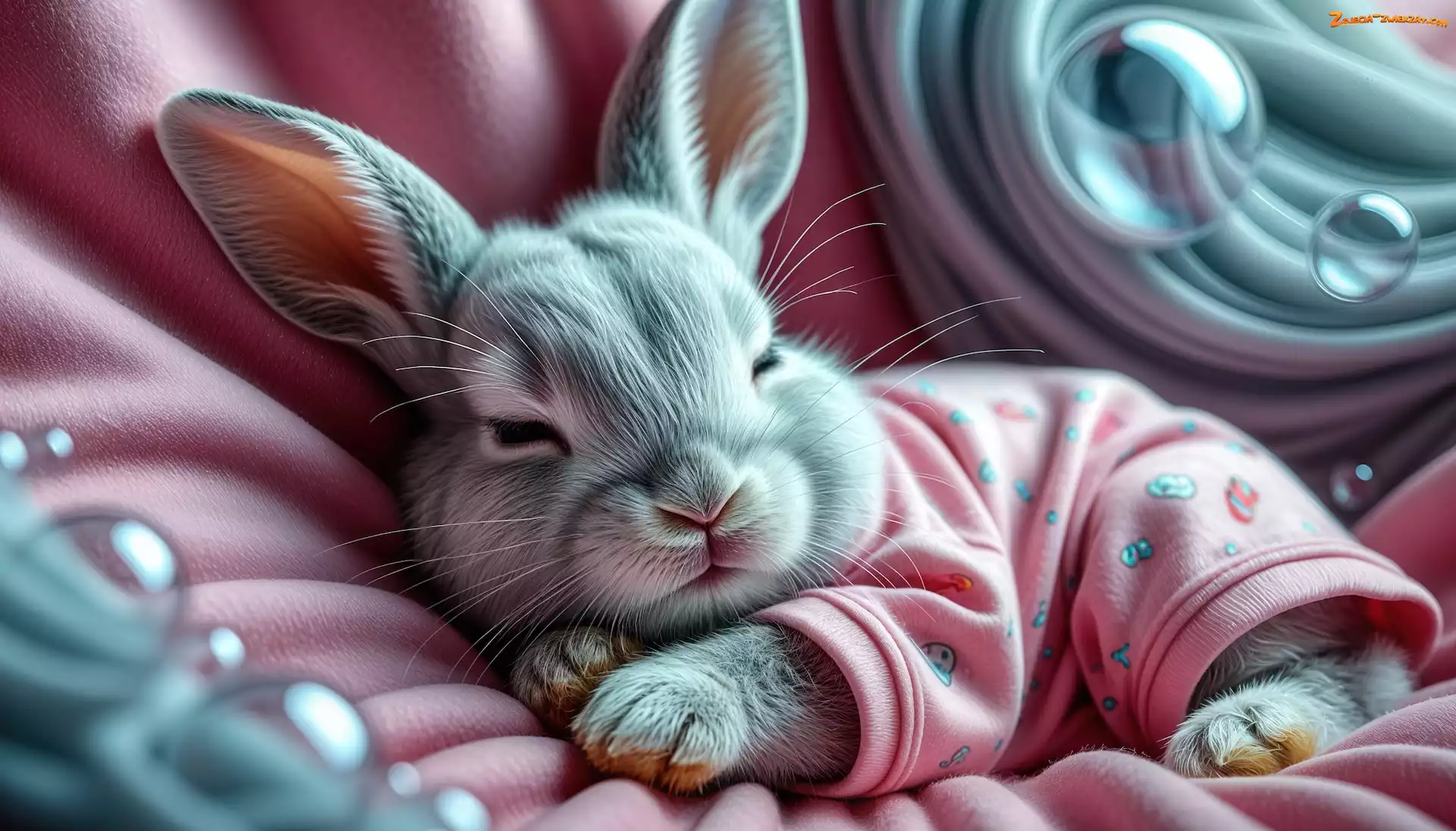 Zdjęcie: Różowa, Piżama, AI, Śpiący, Królik