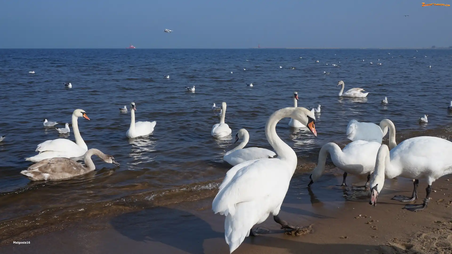 Zdjęcie: Plaża, Morze, Ptaki, Białe, Łabędzie