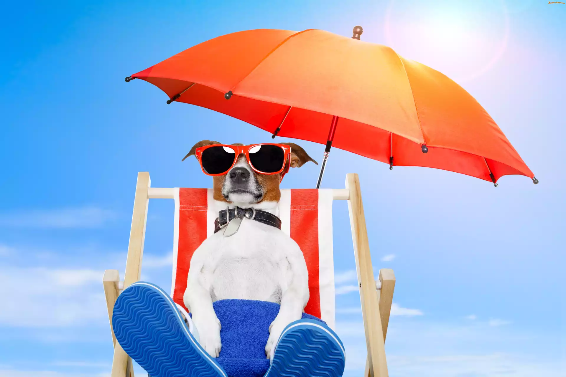 Plaża, Pies, Wakacje, Parasol, Jack russell terrier, Leżak
