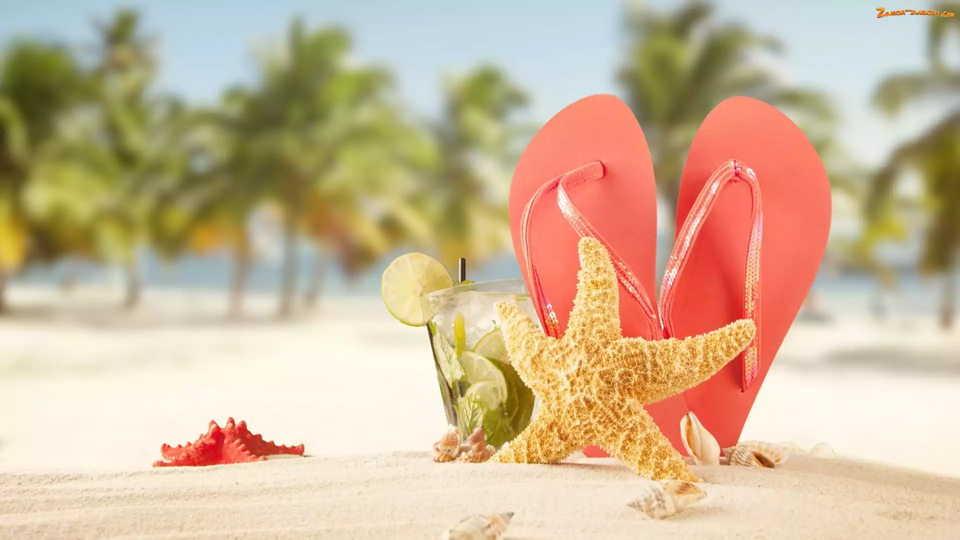 Zdjęcie: Plaża, Lato, Rozgwiazda, Drink, Wakacje, Japonki