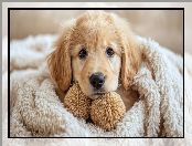 Spojrzenie, Golden retriever, Pled, Pies, Szczeniak
