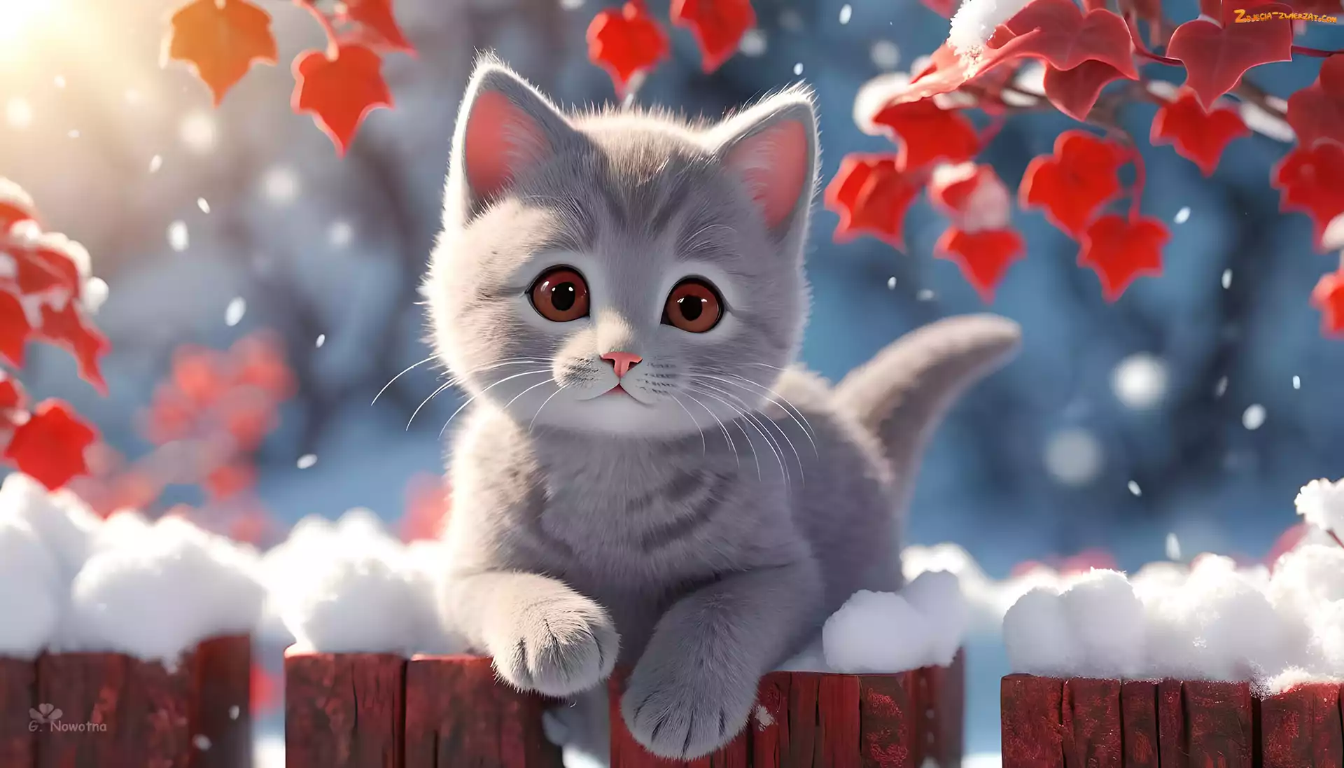Zdjęcie: Śnieg, Płot, Grafika, Szary, Kot