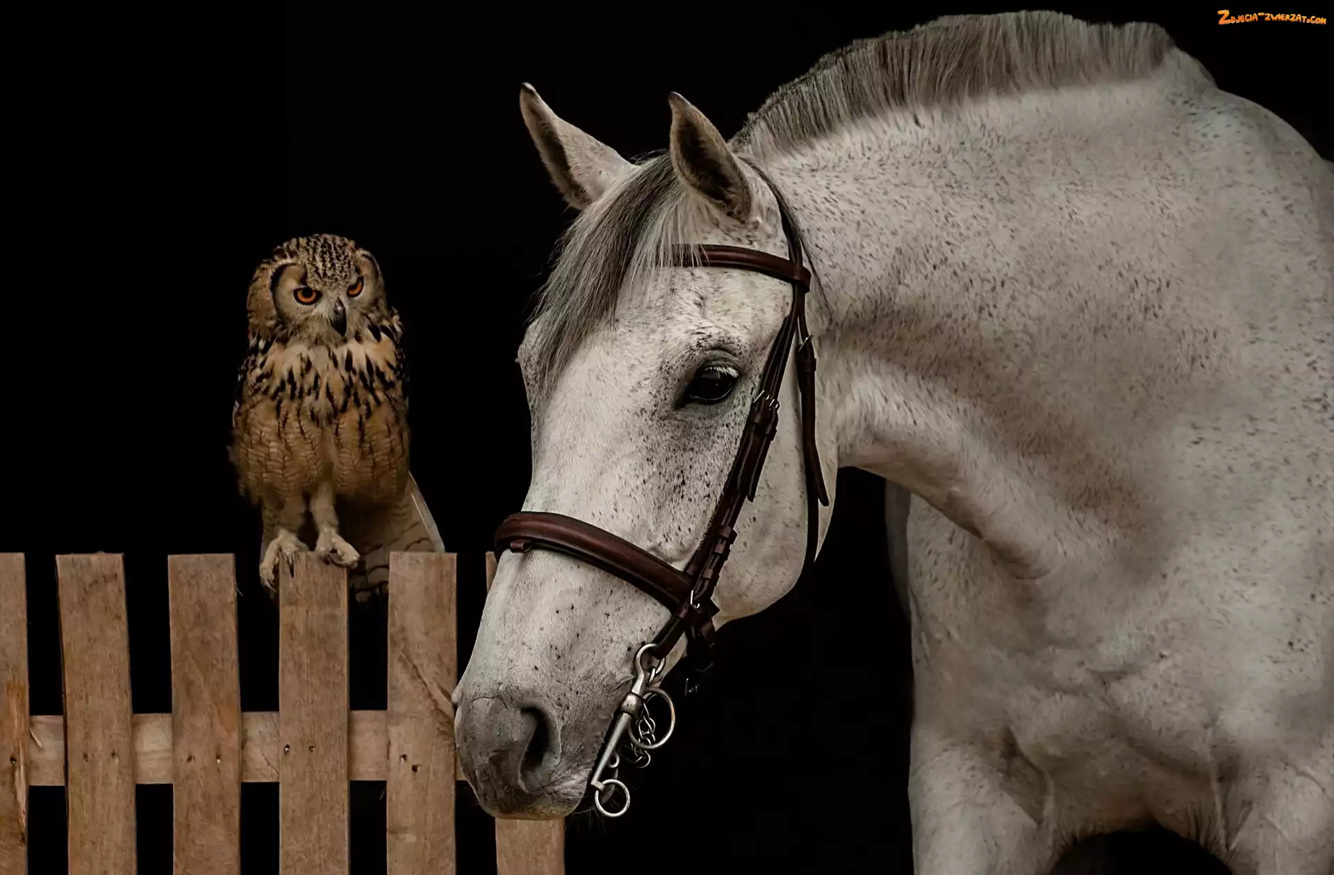 Zdjęcie: Płot, Drewniany, Koń, Siwy, Sowa