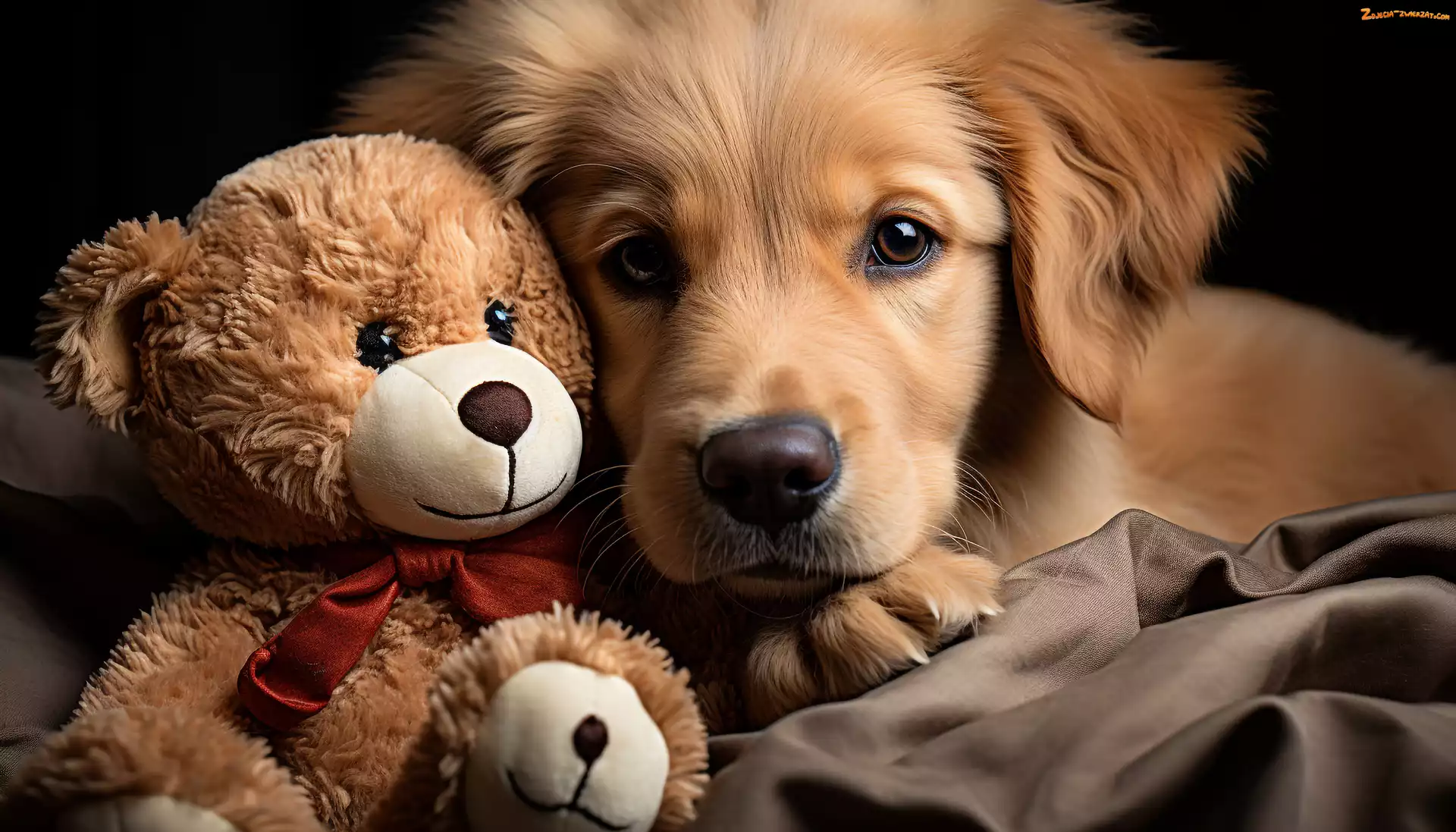 Zdjęcie: Miś, Pluszowy, Kokarda, Pies, Szczeniak
