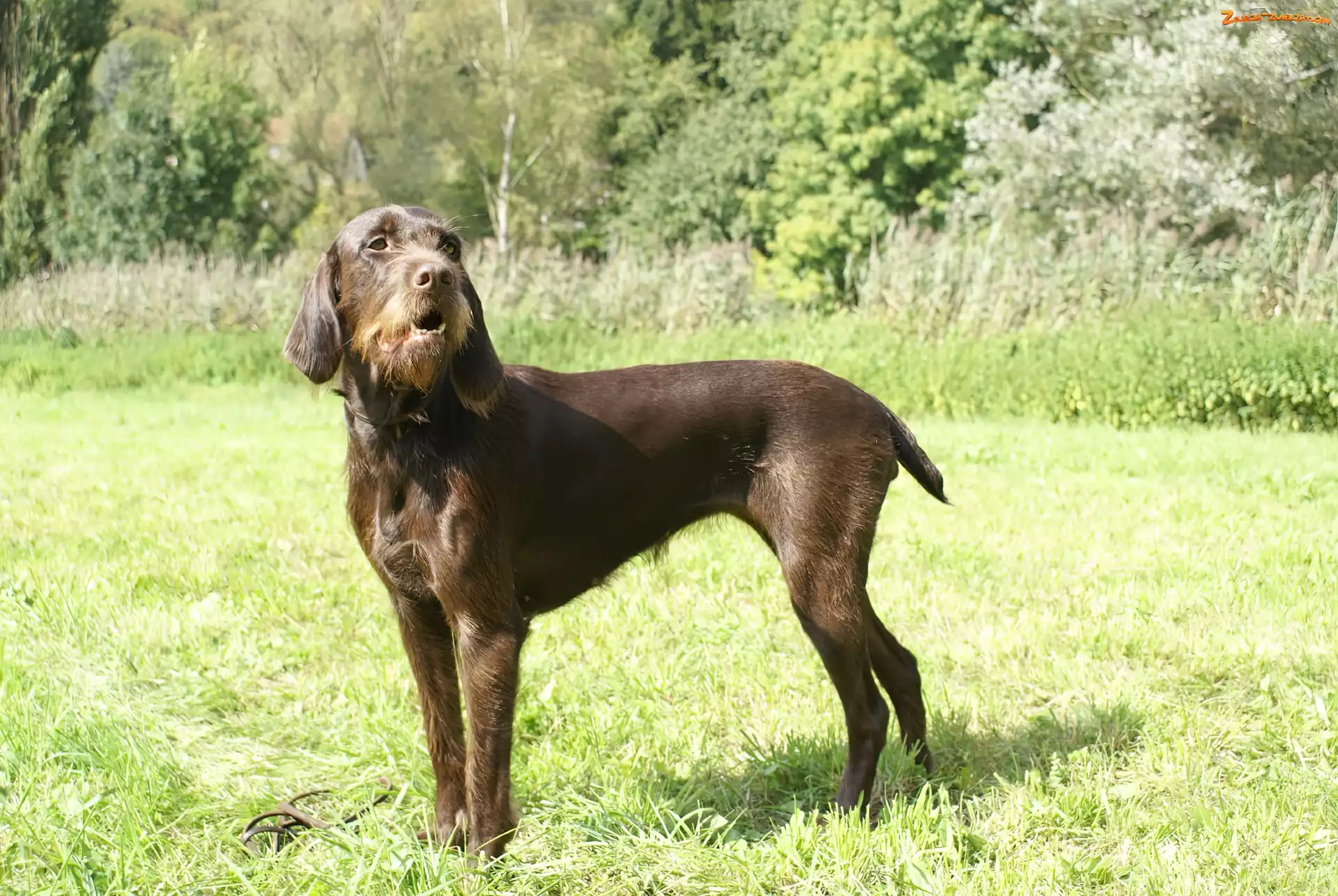 trawa, Pudel Pointer Szczeniaki, karmiąca suka, Pudel Pointer Pudel Pointer, strzelba, kaczki, zabite Brązowy, Pudelpointer