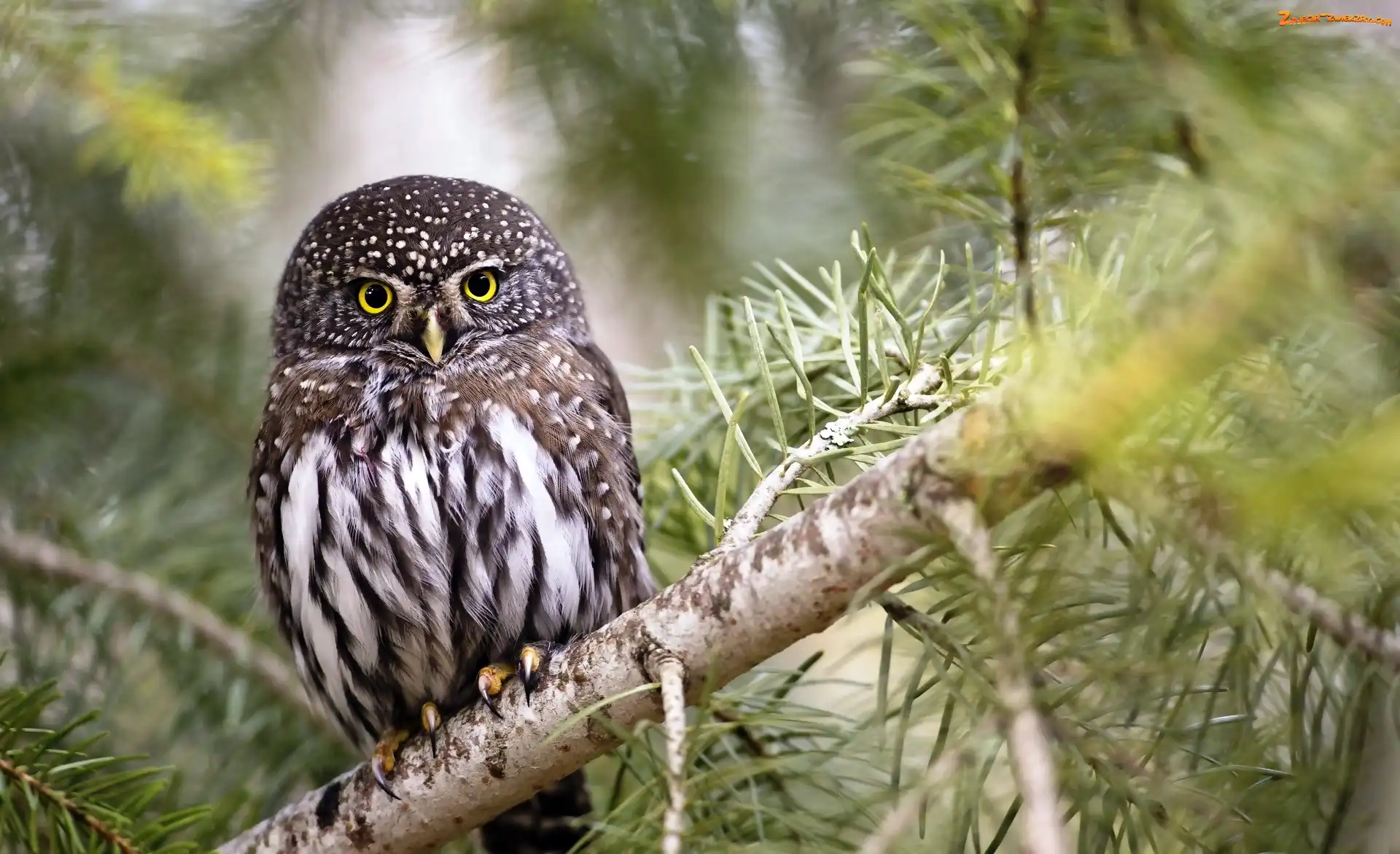 Zdjęcie: Pójdźka, Sosna, Sowa, Gałąź
