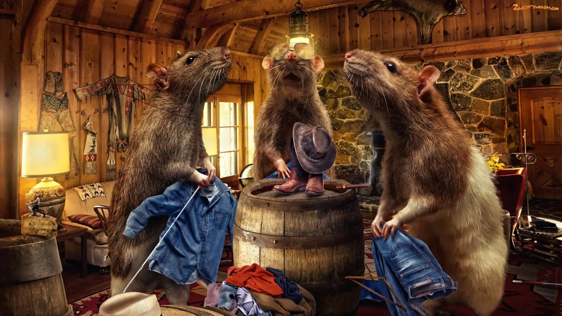 Zdjęcie: Pokój, Śmieszne, Ubrania, Lampa, Szczury, Beczka