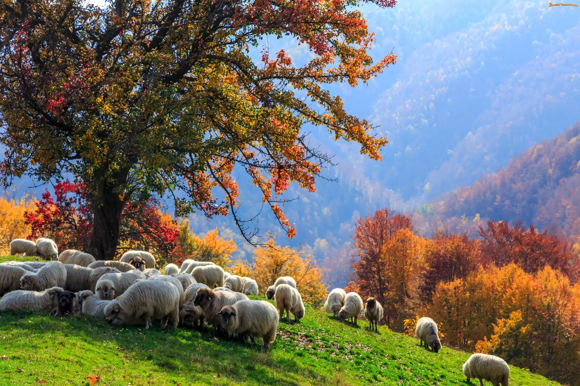 Zdjęcie: Jesień, Polana, Góry, Wypas, Pies, Lasy, Owce