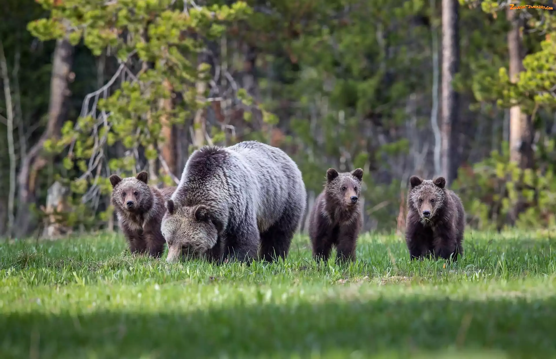 Zdjęcie: Polana, Młode, Brunatne, Niedźwiedzie, Samica
