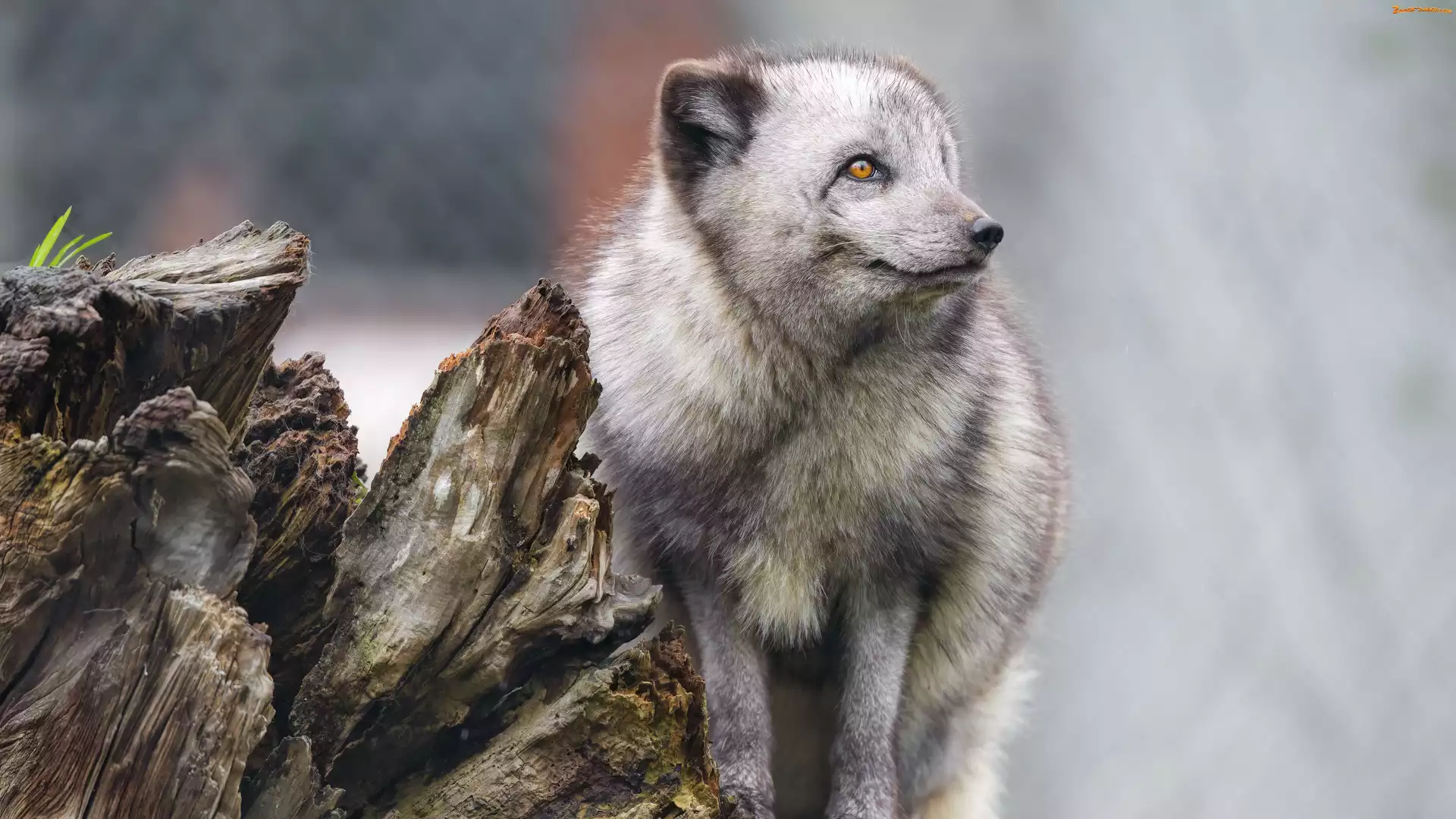 Zdjęcie: Lis polarny, Uschnięty, Kłoda, Pień