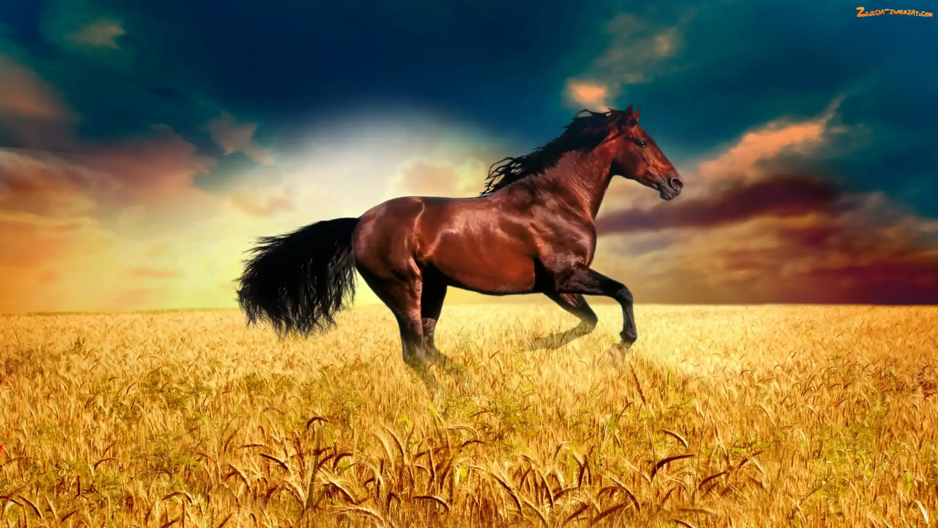 Pole, Chmury, Koń, Pszenica