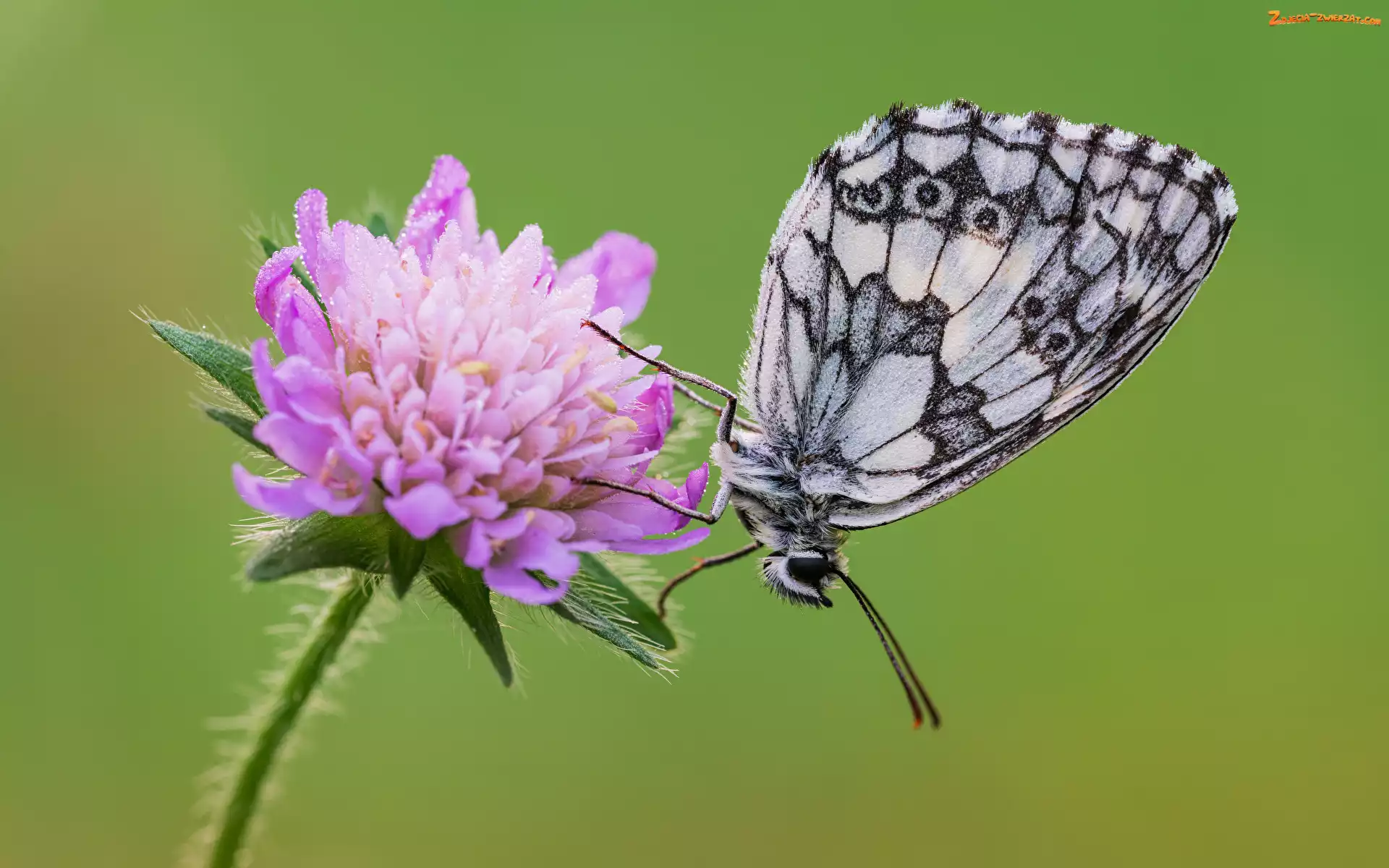Zdjęcie: Kwiat, Fioletowy, Świerzbnica polna, Motyl, Polowiec szachownica
