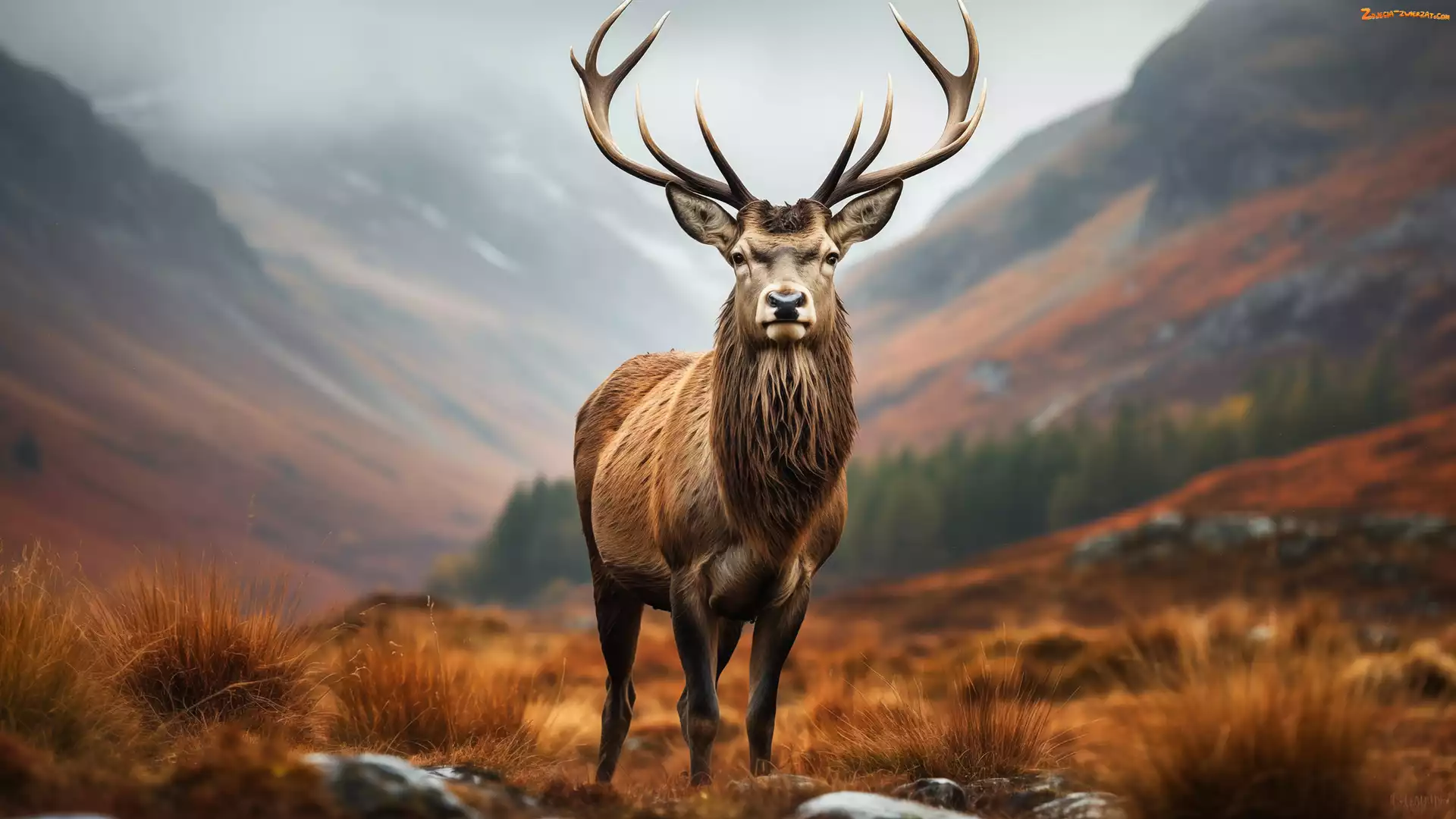 Zdjęcie: Mgła, Sucha, Jeleń, Poroże, Trawa, Góry