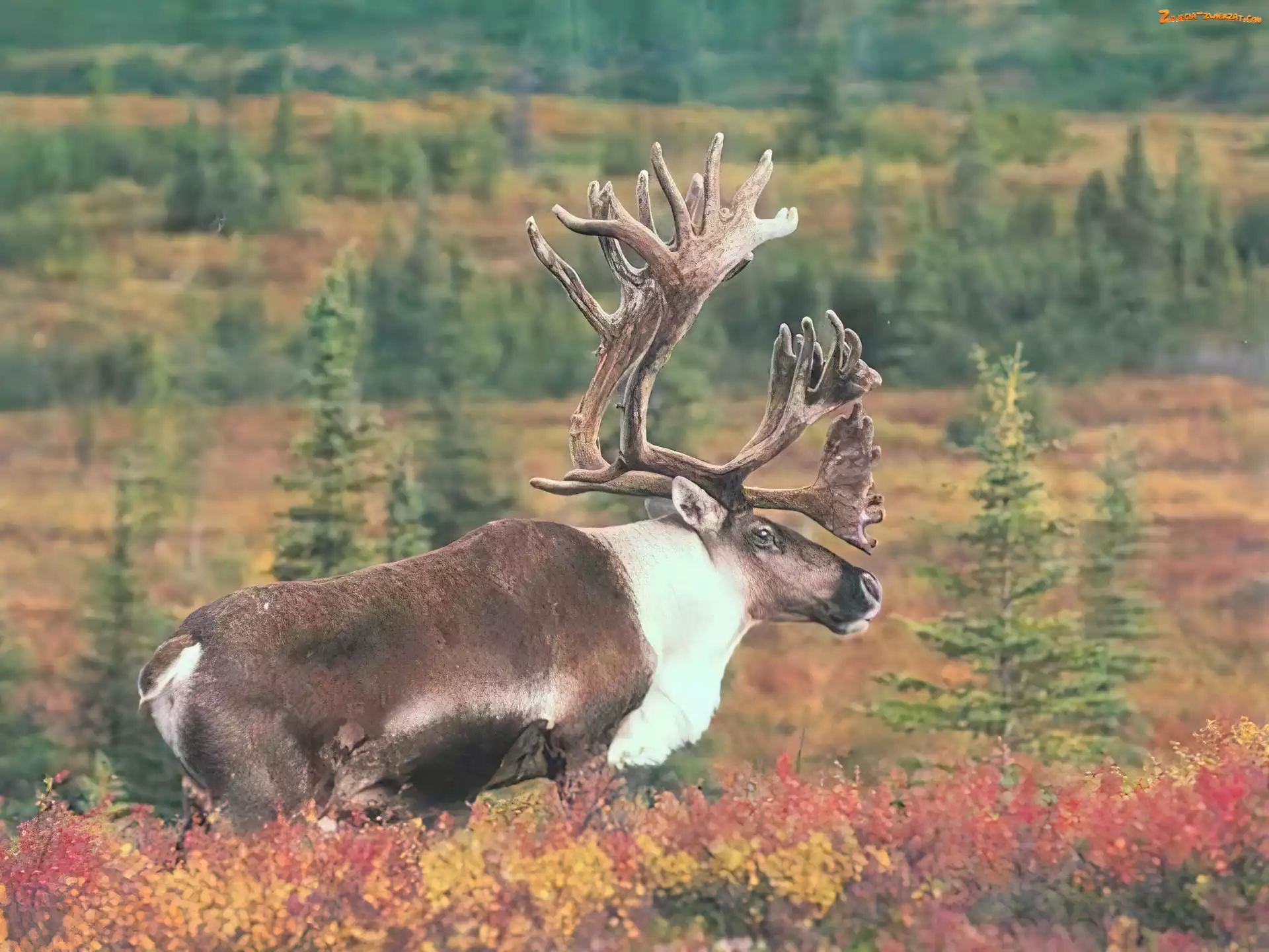 Poroże, Drzewa, Renifer, Łąka
