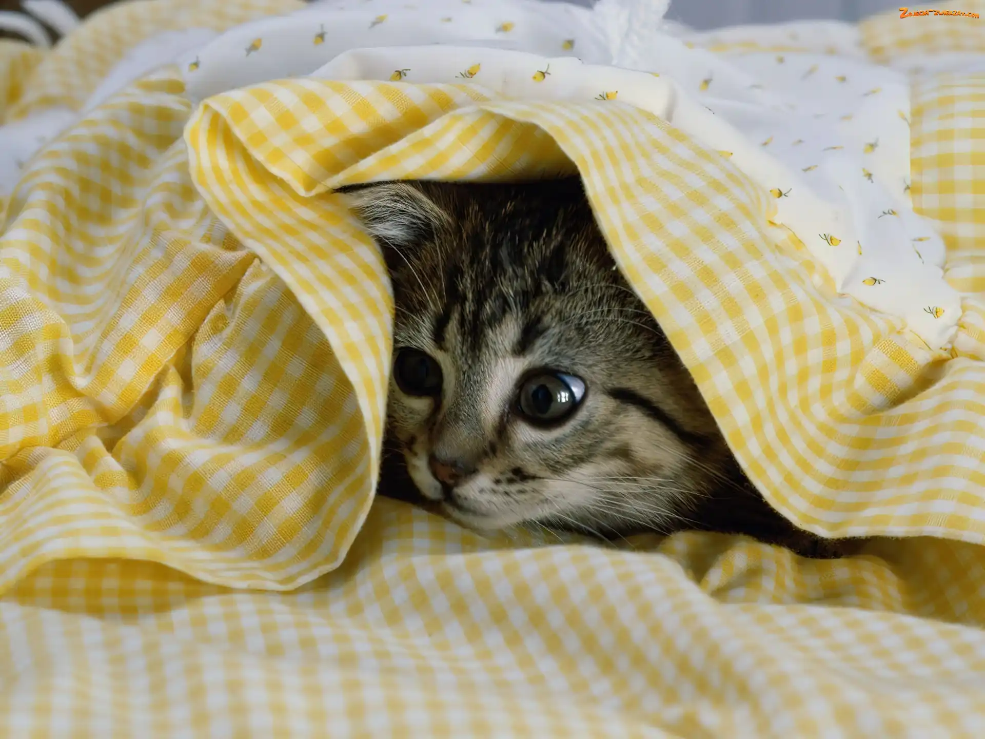 Zdjęcie: Pościel, Żółta, Szary, Mały, Kotek
