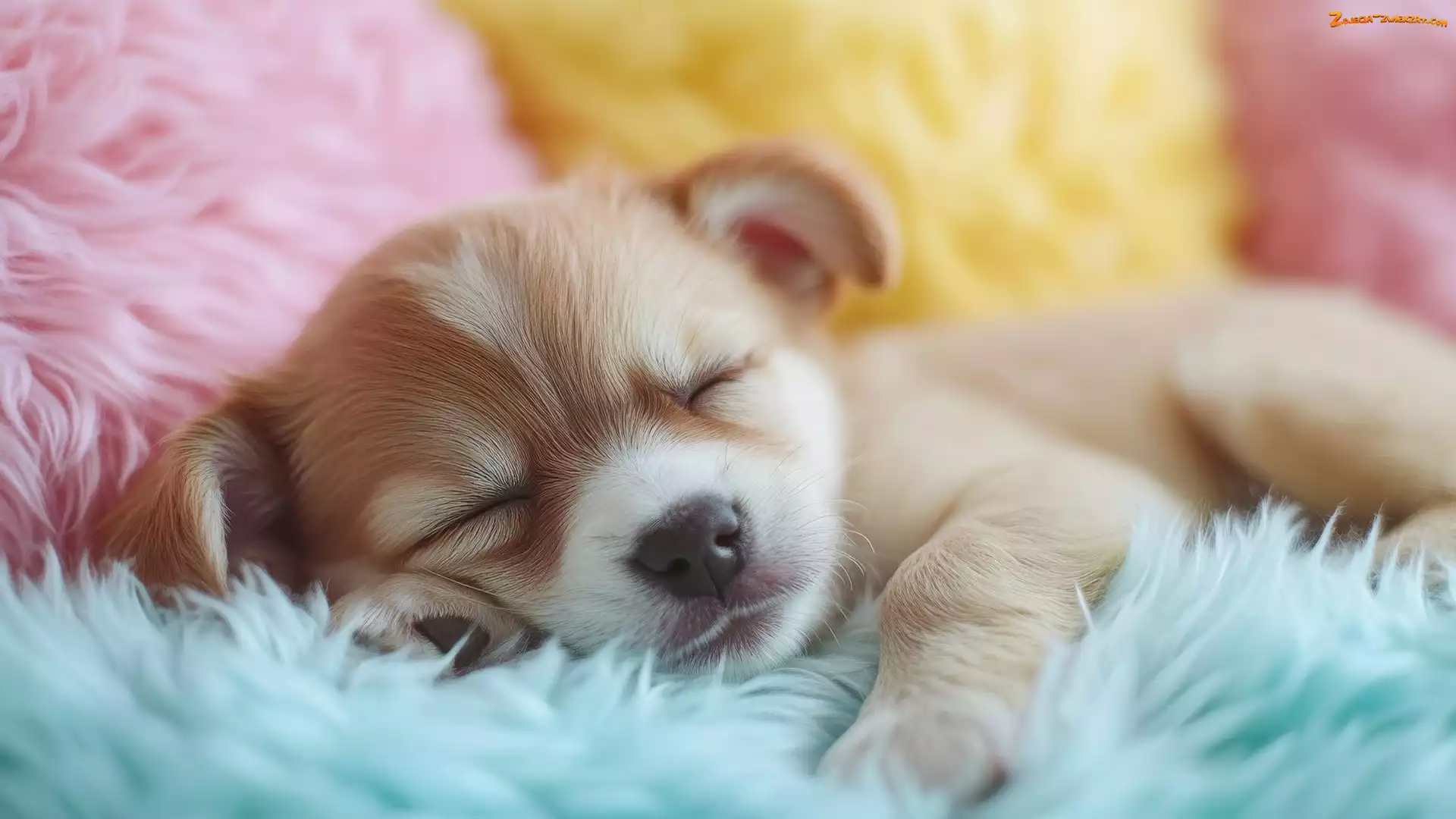 Różowo-niebieskie, Szczeniak, Posłanie, Pies, Śpiący