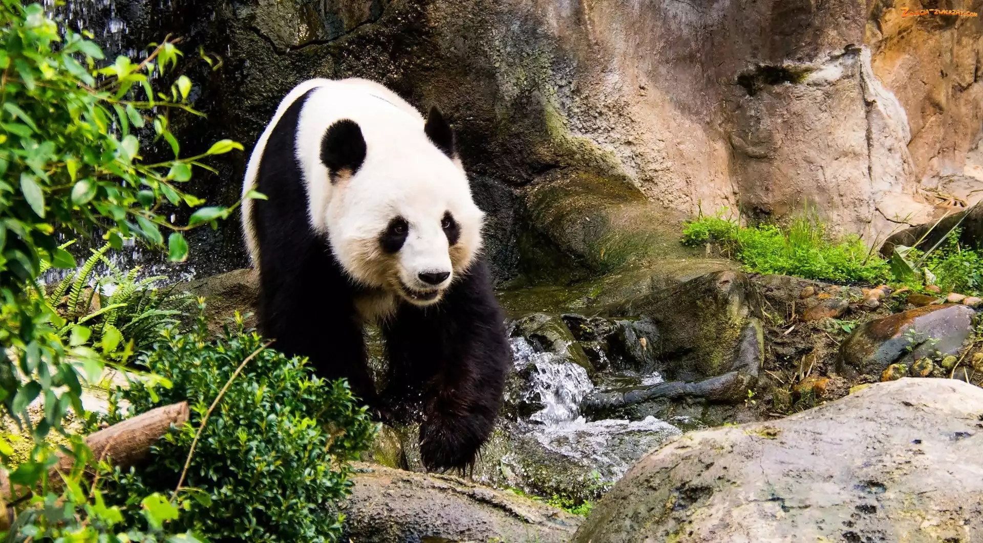 Zdjęcie: Potok, Skały, Panda, Krzewy