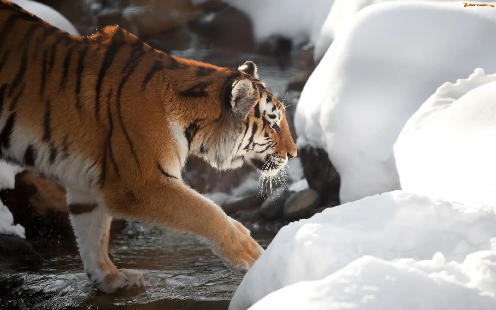 Zdjęcie: Potok, Zima, Tygrys, Kamienie