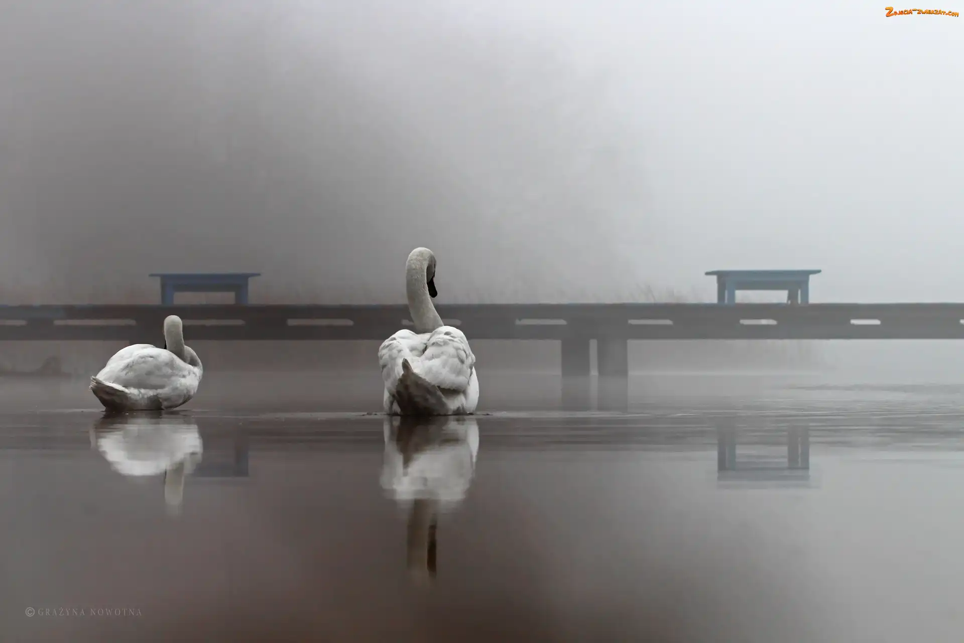 Zdjęcie: Poznań, Rusałka, Pomost, Łabędzie, Jezioro